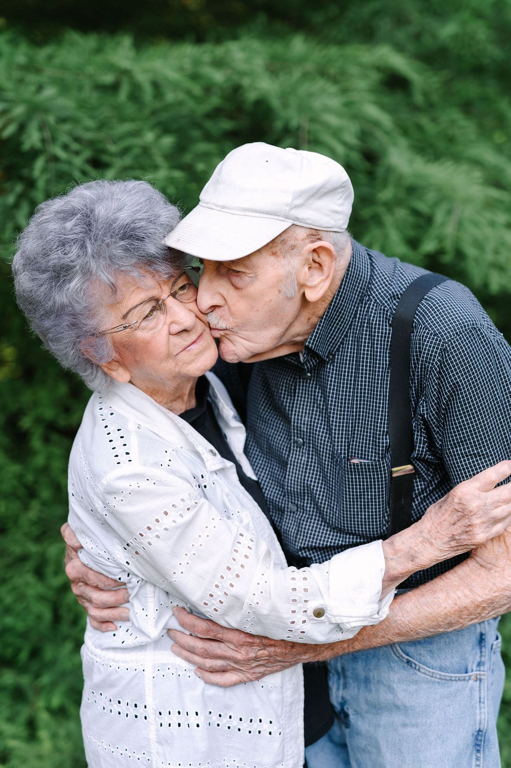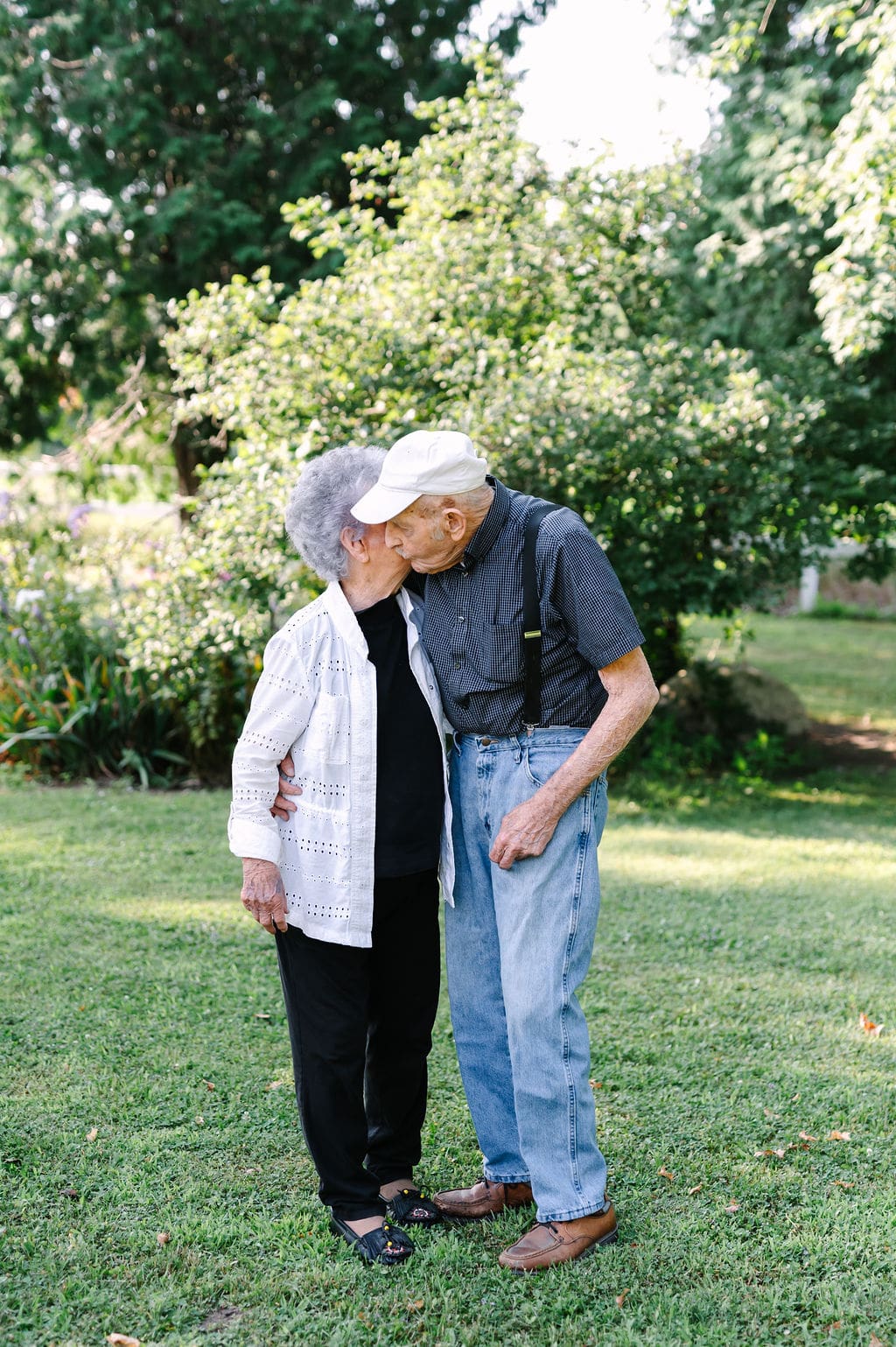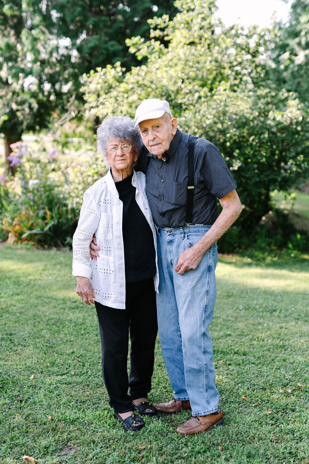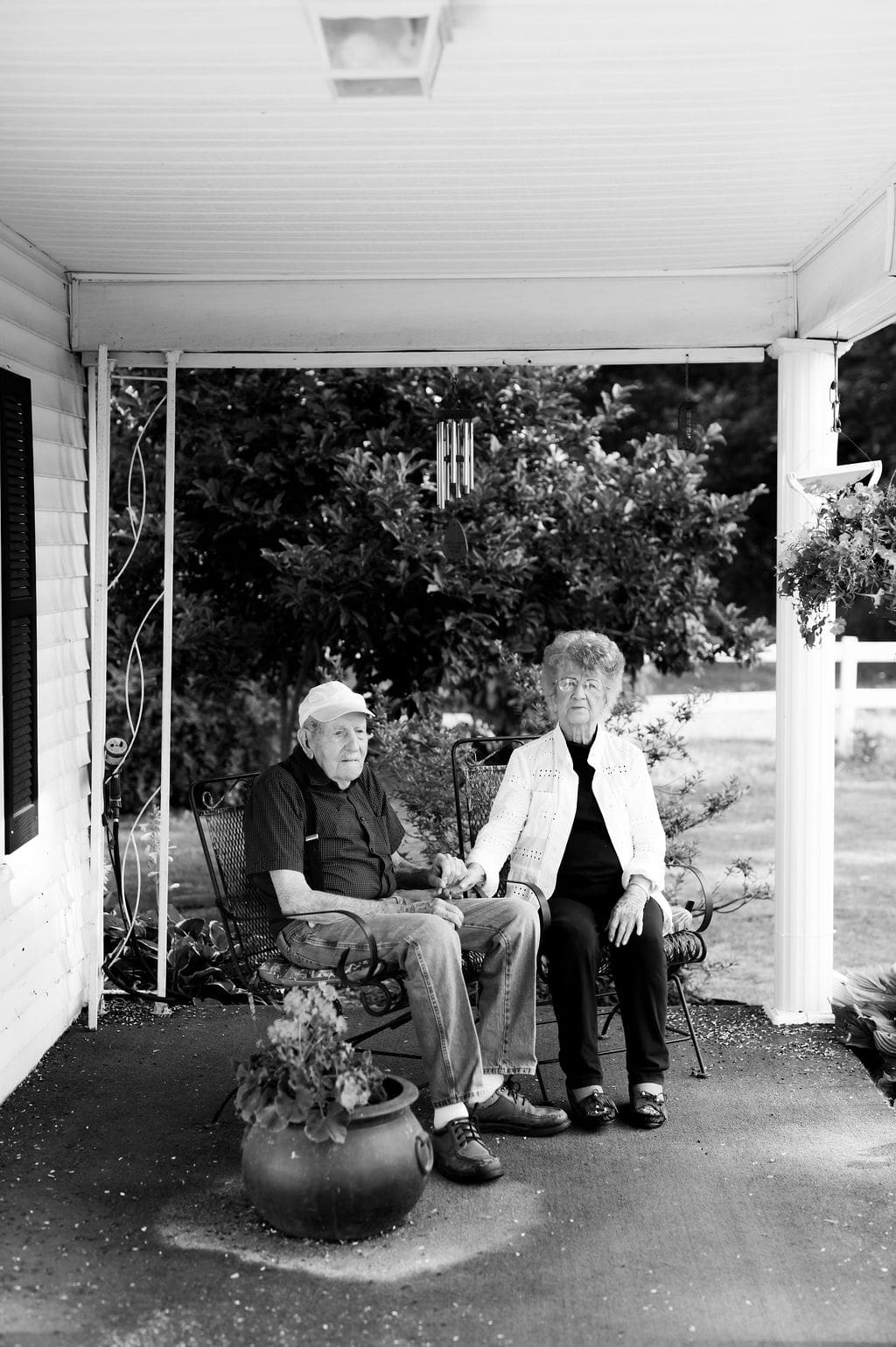 One of the most meaningful parts of this session is that they have no photographs from their wedding day, making this anniversary session even more special. We spent time reminiscing about their life together, took portraits in the patio chairs where they sit every evening, and photographed them by the garden they’ve lovingly tended for more than seven decades.