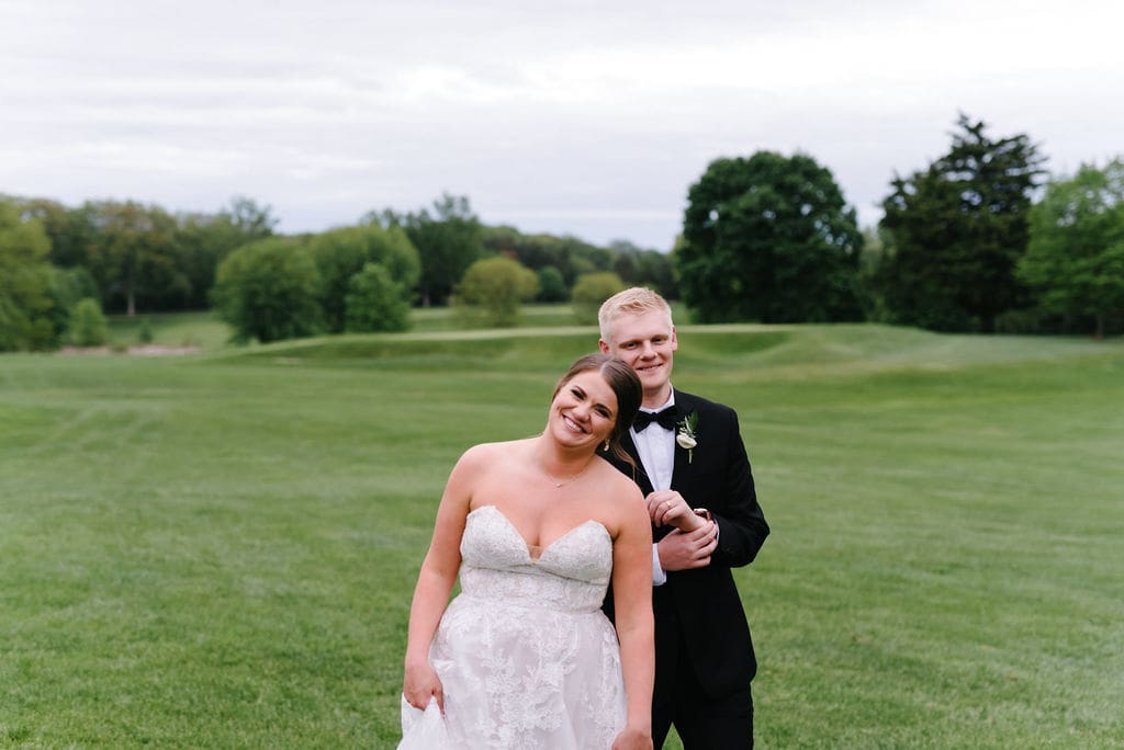 Earlier rain left the golf course incredibly lush, and the overcast skies paired with vibrant grass created the perfect setting for romantic evening portraits.