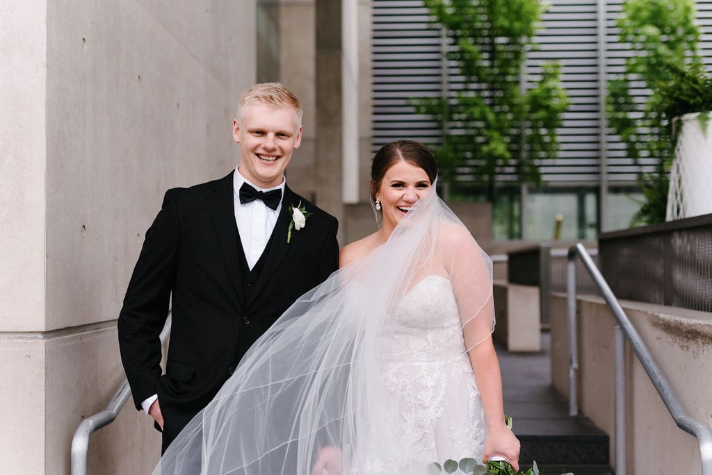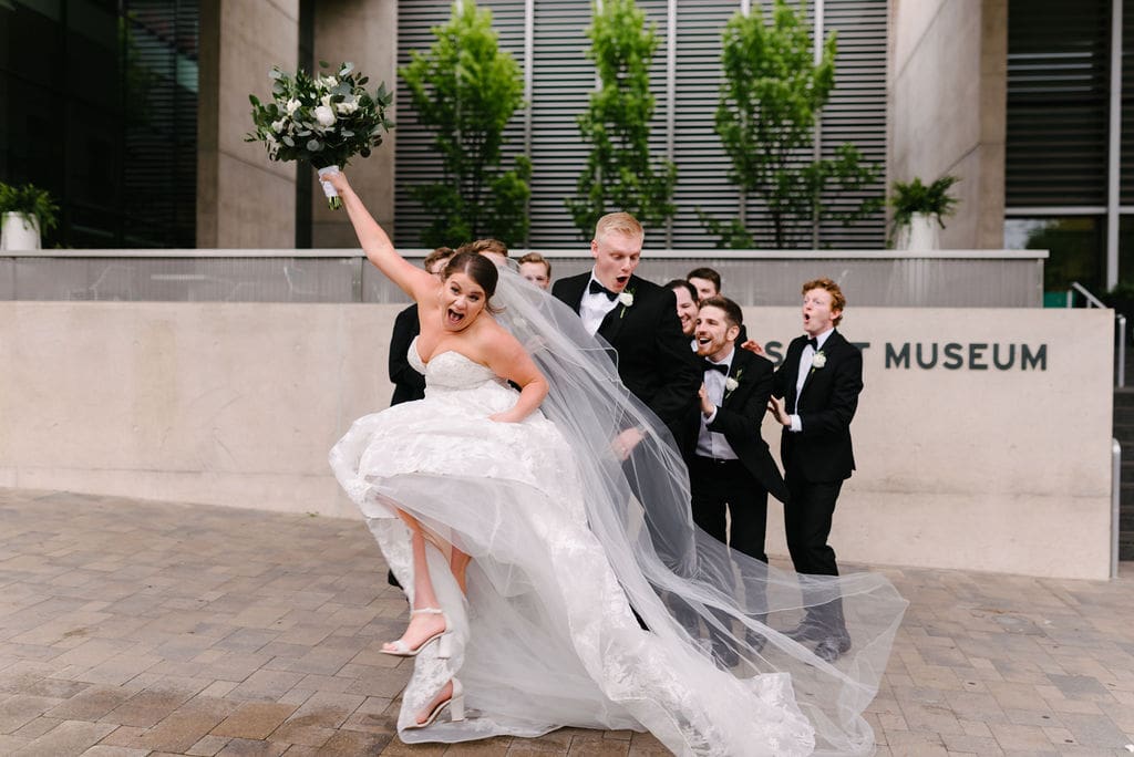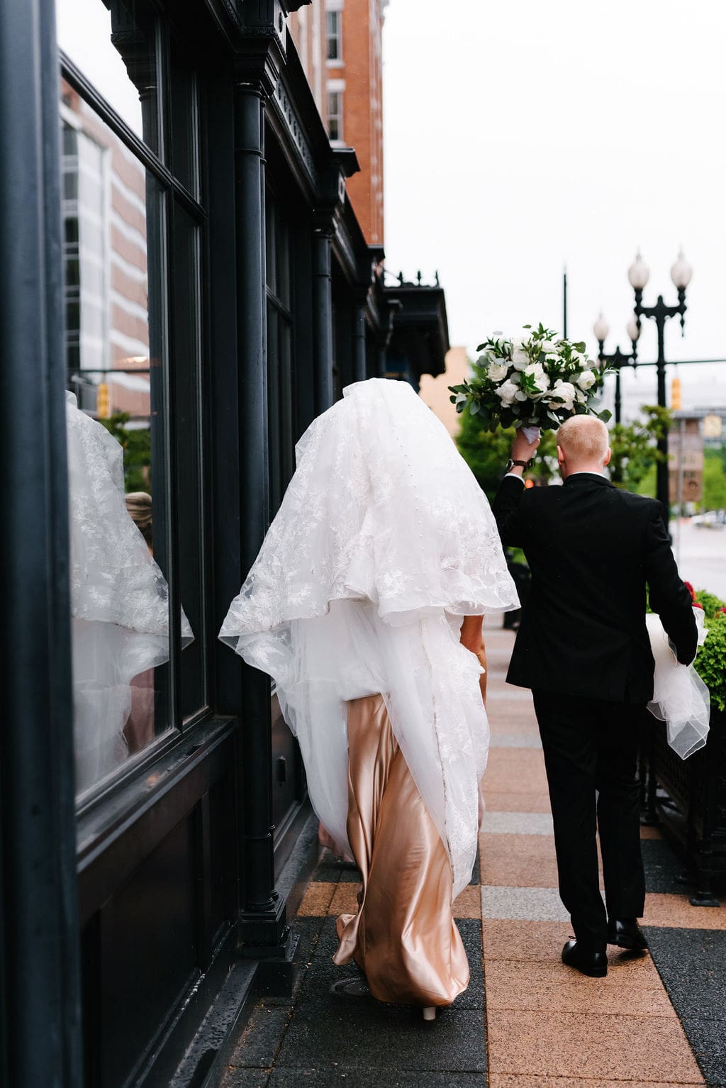 After the ceremony, a party bus transported the bridal party to downtown Grand Rapids for portraits. We utilized iconic locations including the Grand Rapids Art Museum and the Amway Grand Hotel.