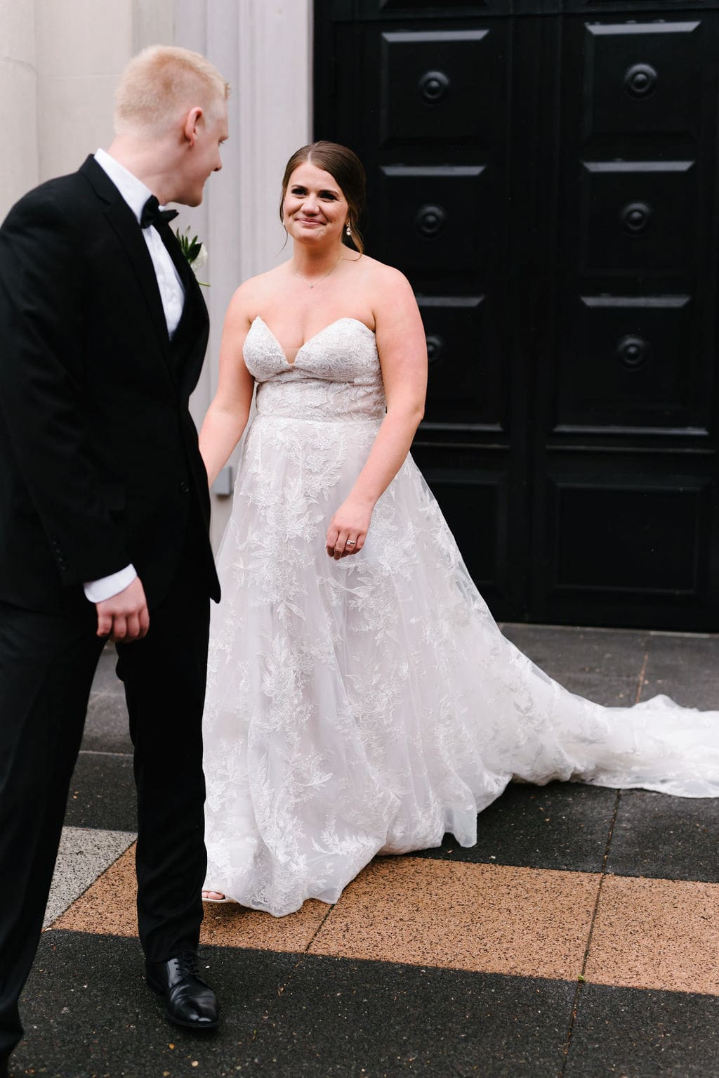 A light May rain set a romantic tone for Sarah and Andrew’s ceremony at Seymour CRC. Designed by Shelly’s Design Florist, the florals filled the space with beauty and softness, enhancing the church’s classic charm.