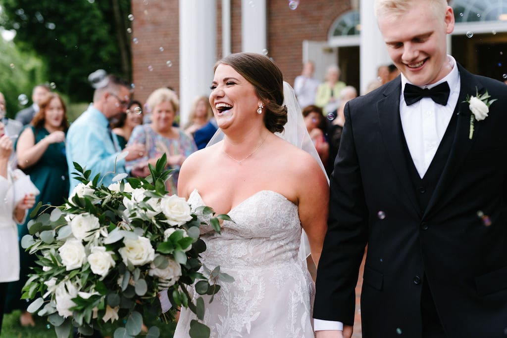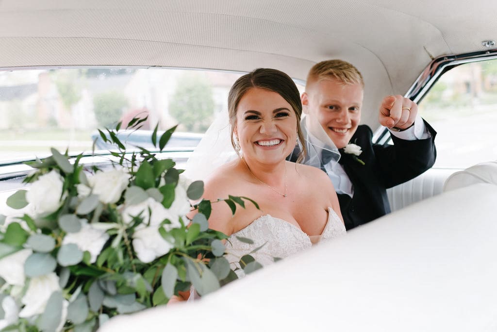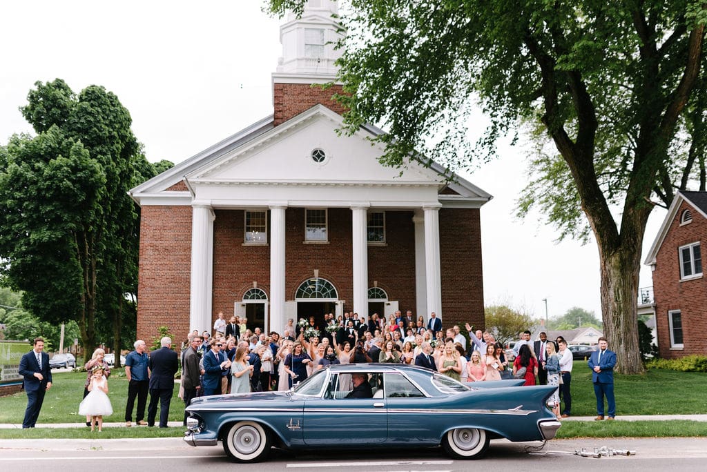 Following the ceremony, guests gathered for a joyful bubble send-off. The newlyweds departed in a classic steel blue car—an unforgettable and picture-perfect moment.