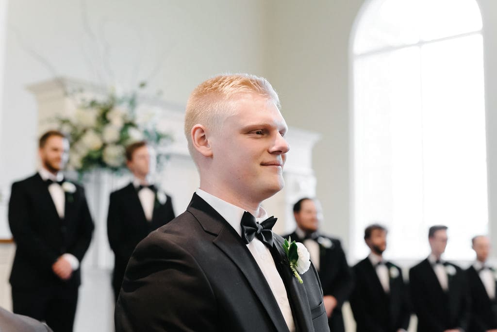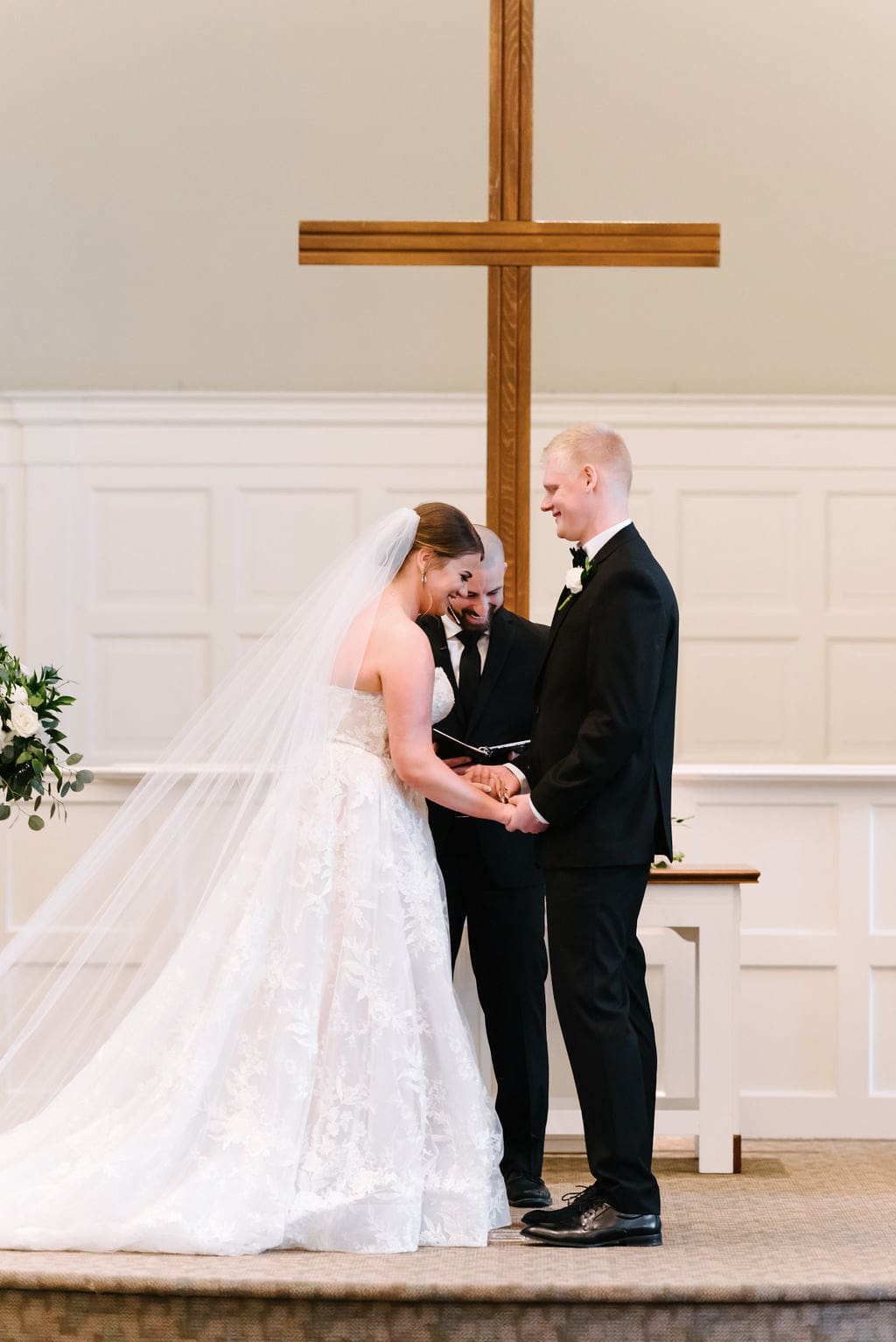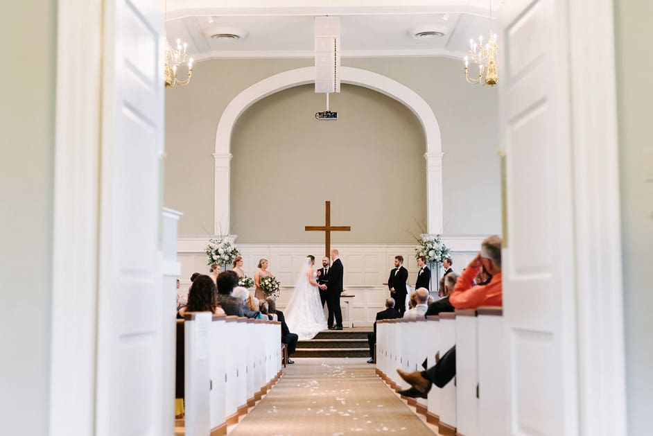 Sarah wore a lace strapless wedding gown with a classic silhouette from Becker’s Bridal.