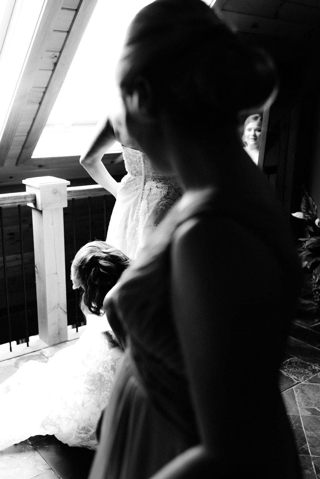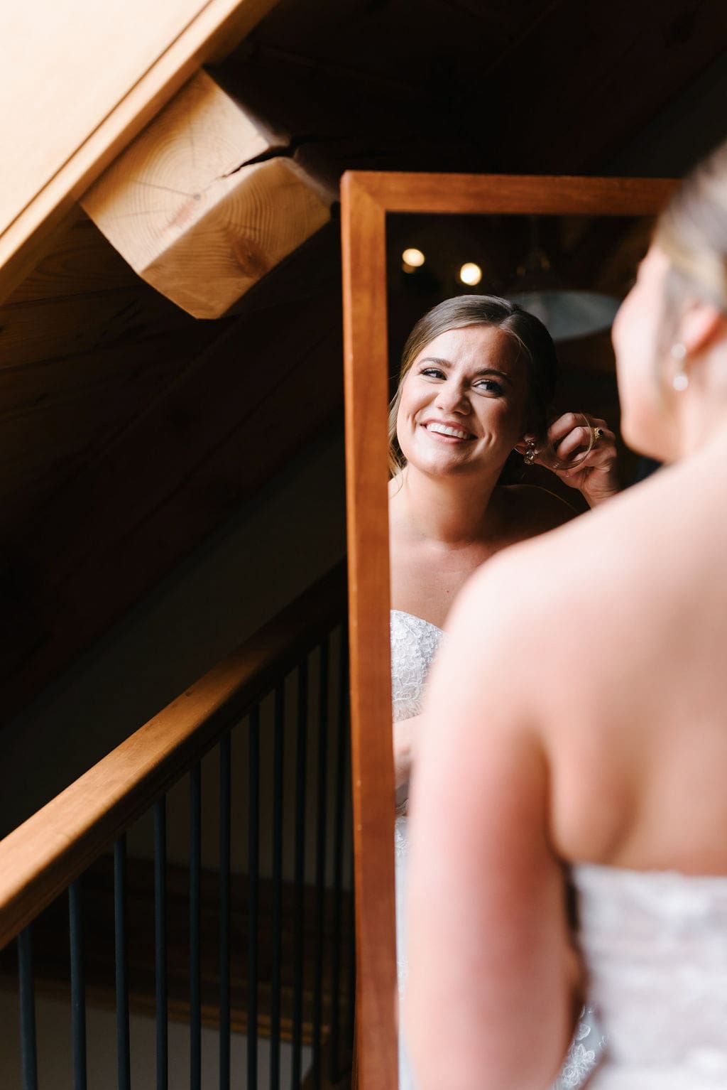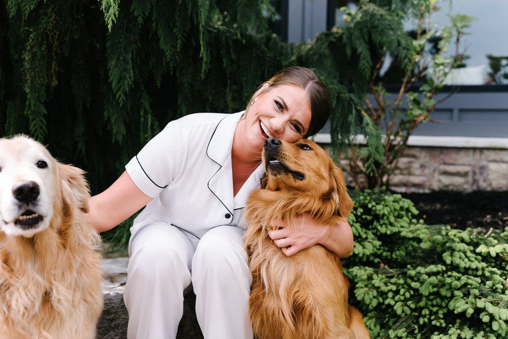 The morning began at Sarah’s parents’ home in Ada, Michigan, where her sweet pups made a guest appearance and the flower girls sweetly competed for mirror space. The beauty team, led by Morgan Carlson and Hailey Ullrey, created a polished look that perfectly complemented the day.