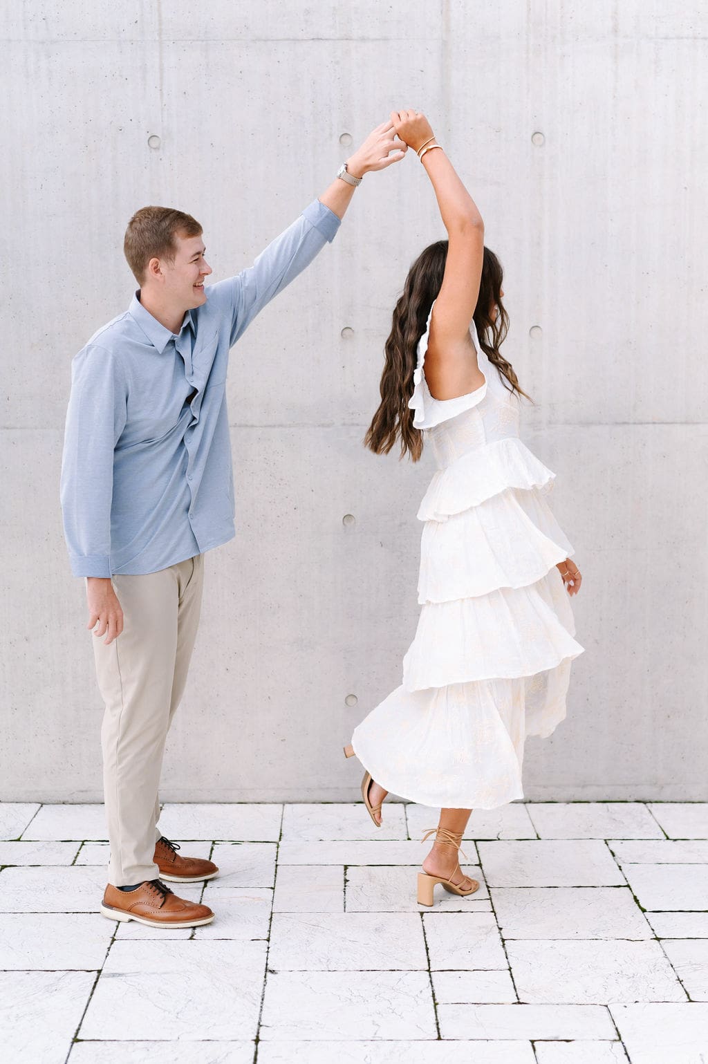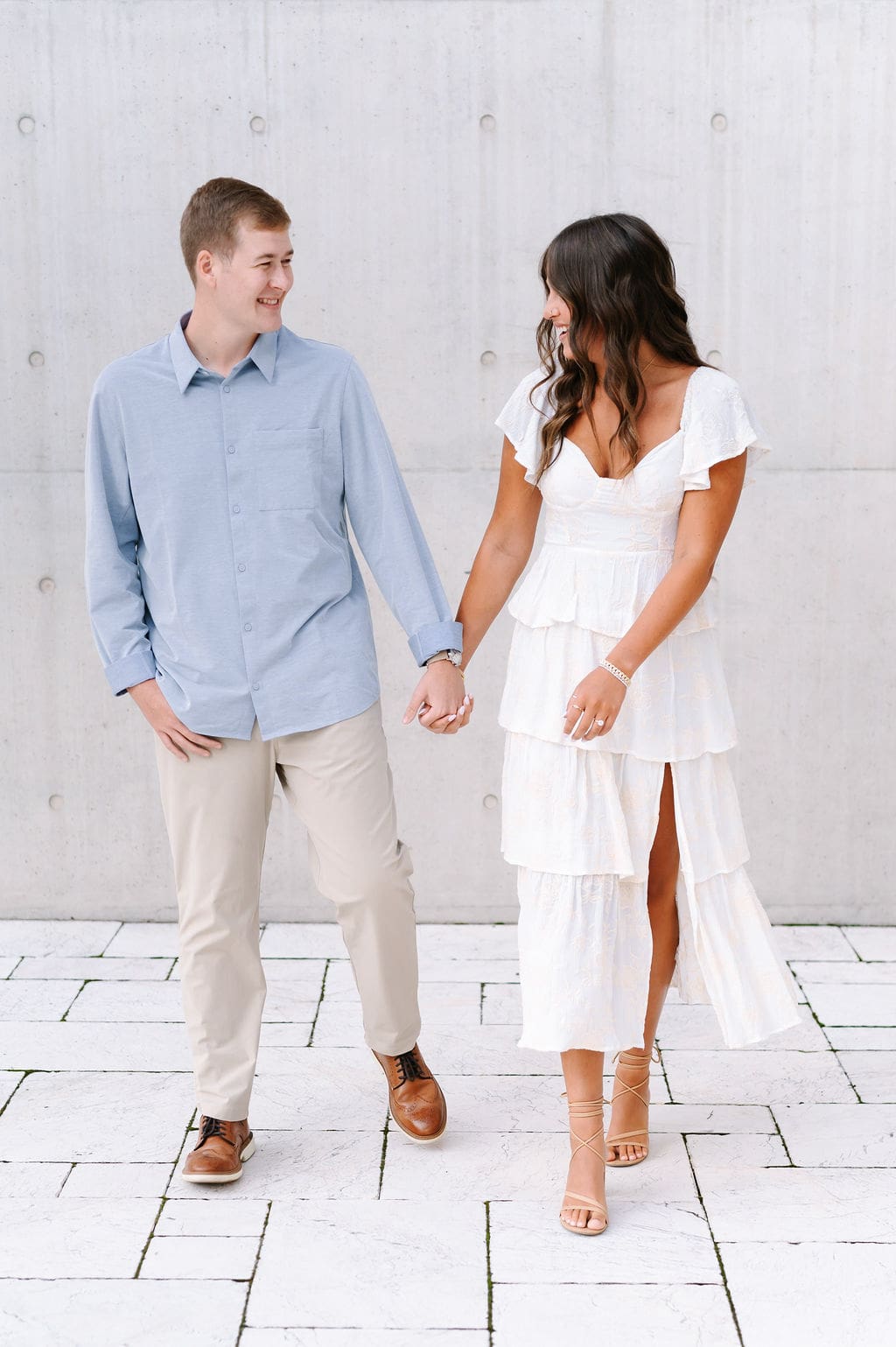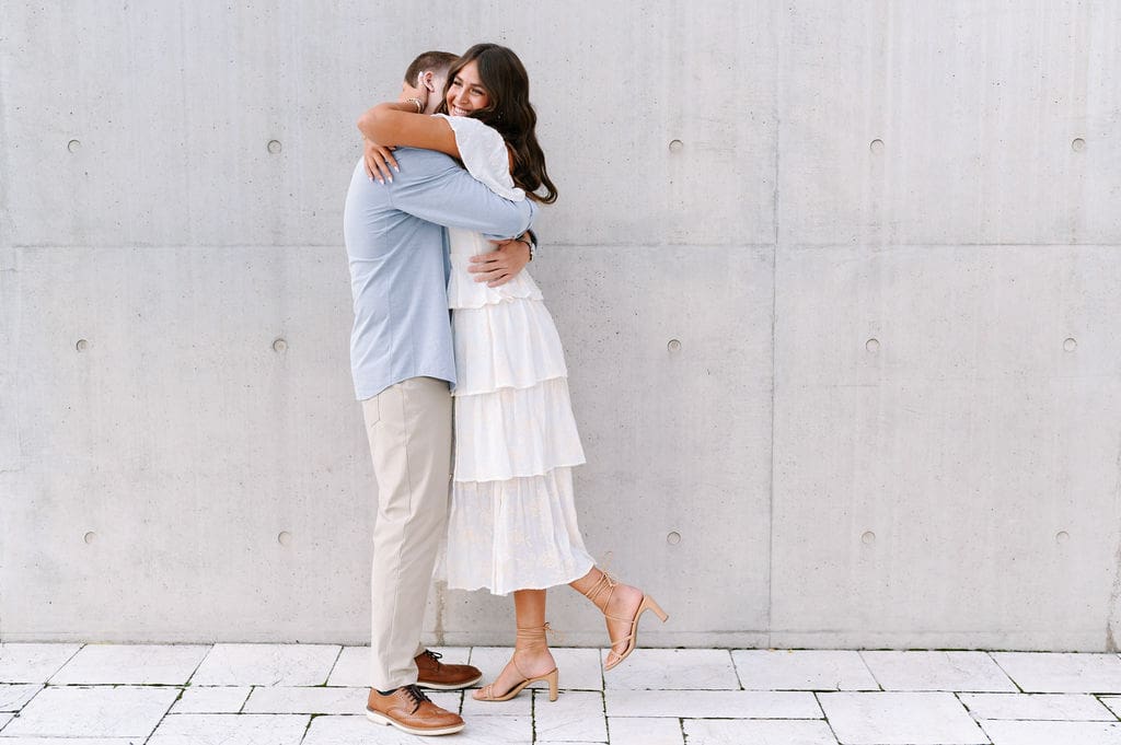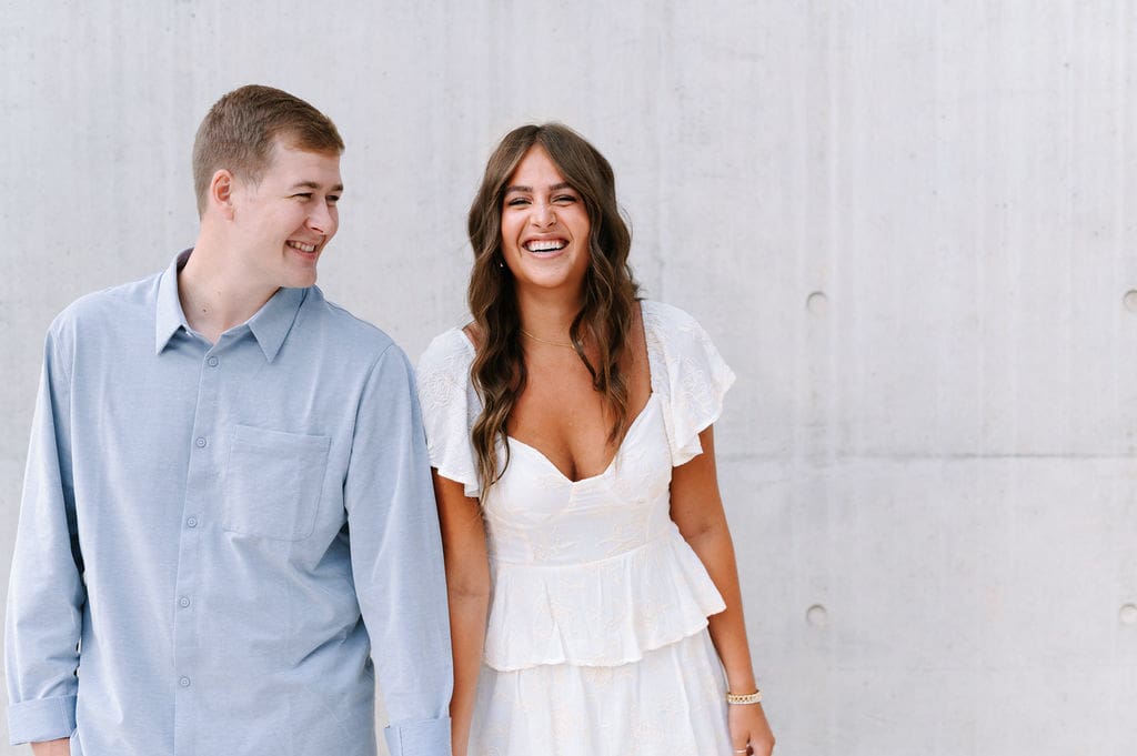 This pastel-inspired Grand Rapids engagement session unfolded just outside the Grand Rapids Art Museum, where modern architecture set the stage for a joyful and stylish afternoon. Soft hues, effortless movement, and genuine laughter filled the session, creating imagery that felt both refined and relaxed in the heart of the city.