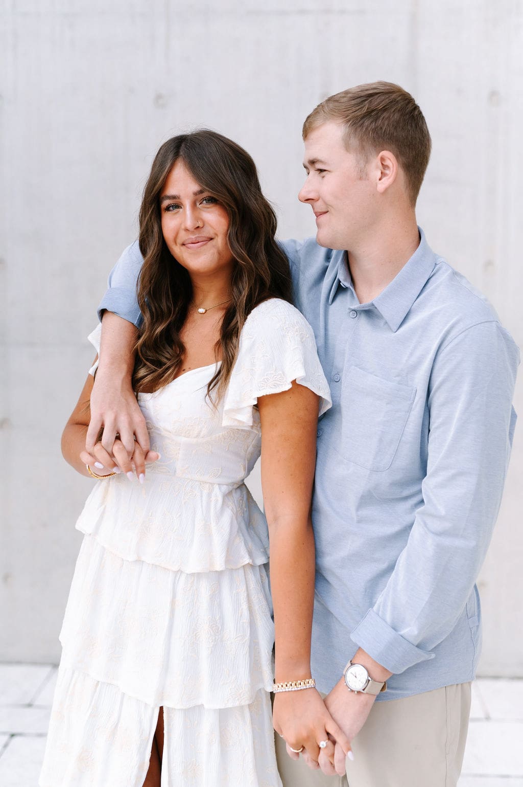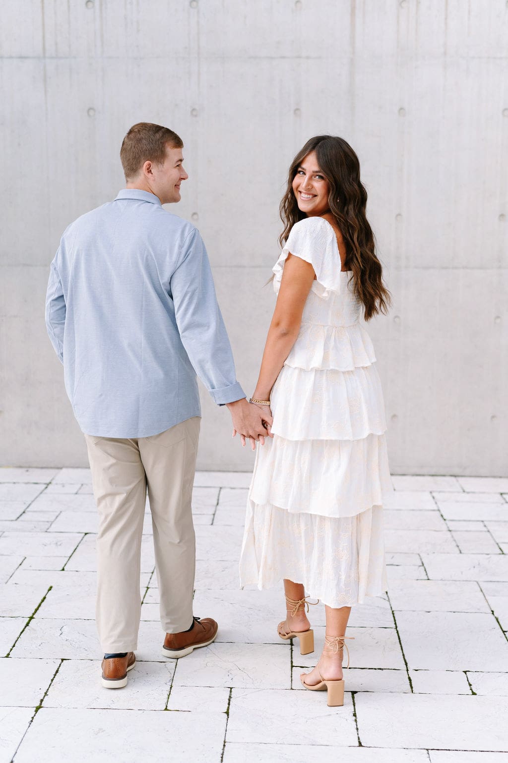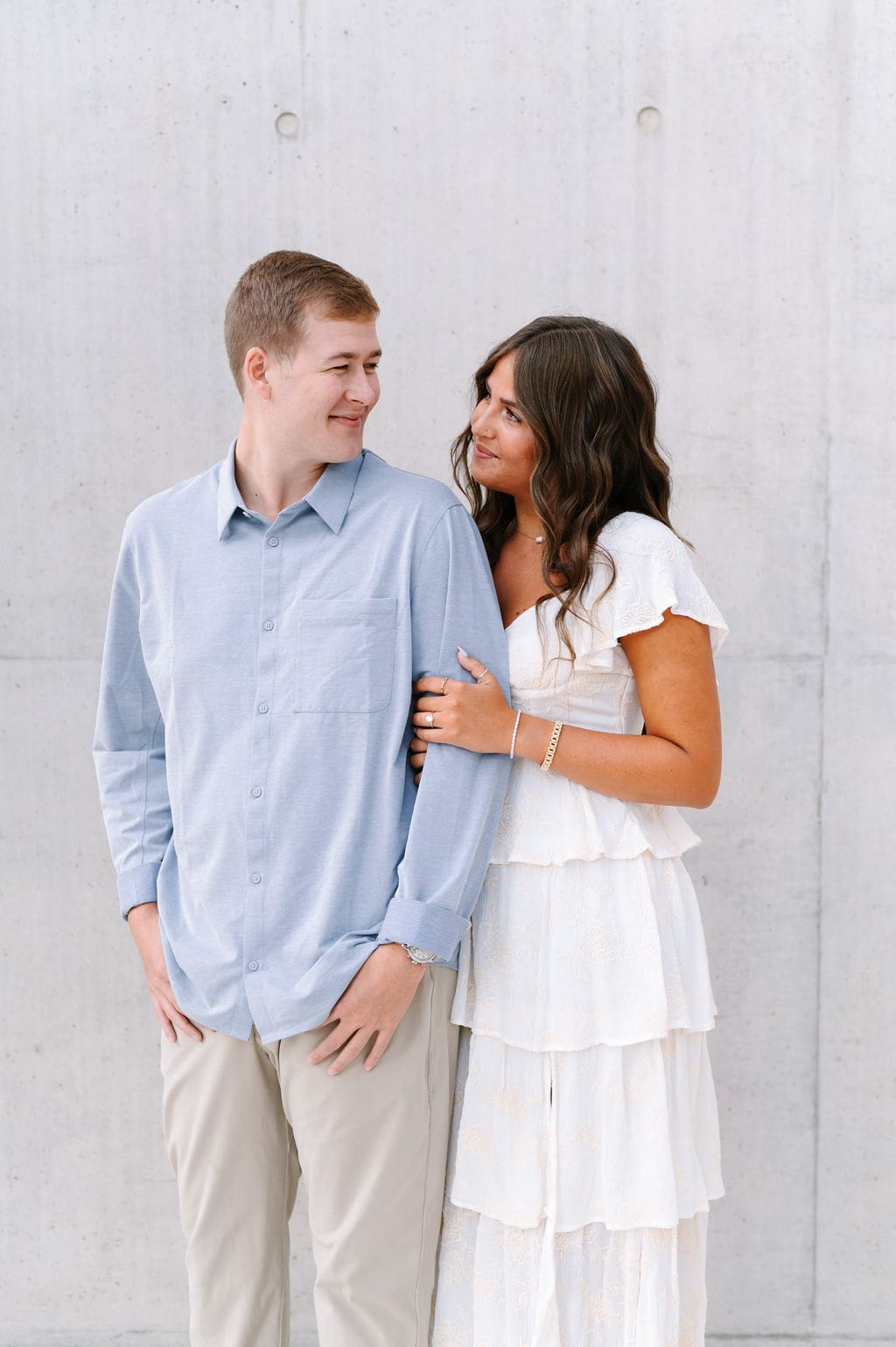 This pastel-inspired Grand Rapids engagement session unfolded just outside the Grand Rapids Art Museum, where modern architecture set the stage for a joyful and stylish afternoon. Soft hues, effortless movement, and genuine laughter filled the session, creating imagery that felt both refined and relaxed in the heart of the city.