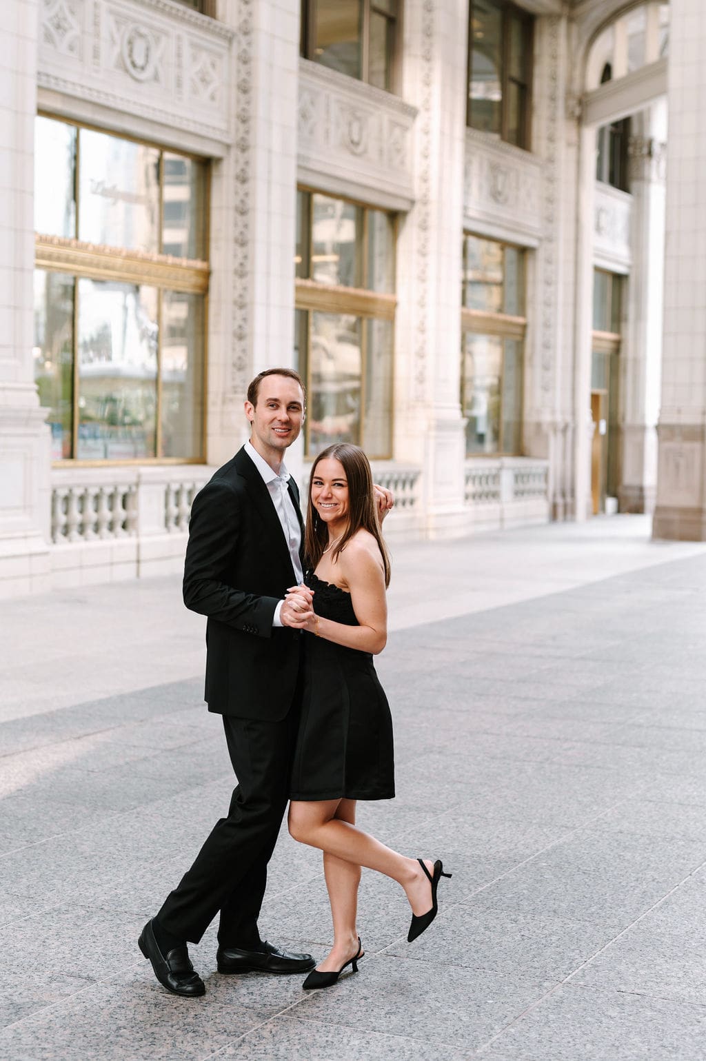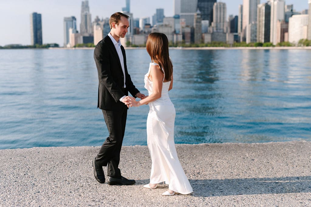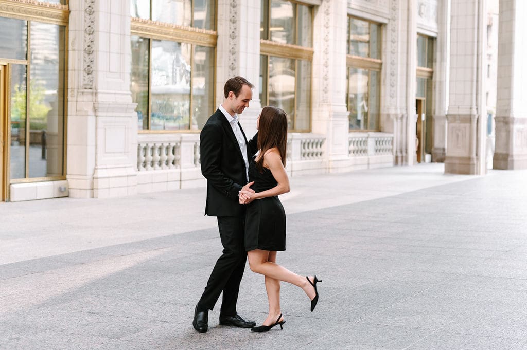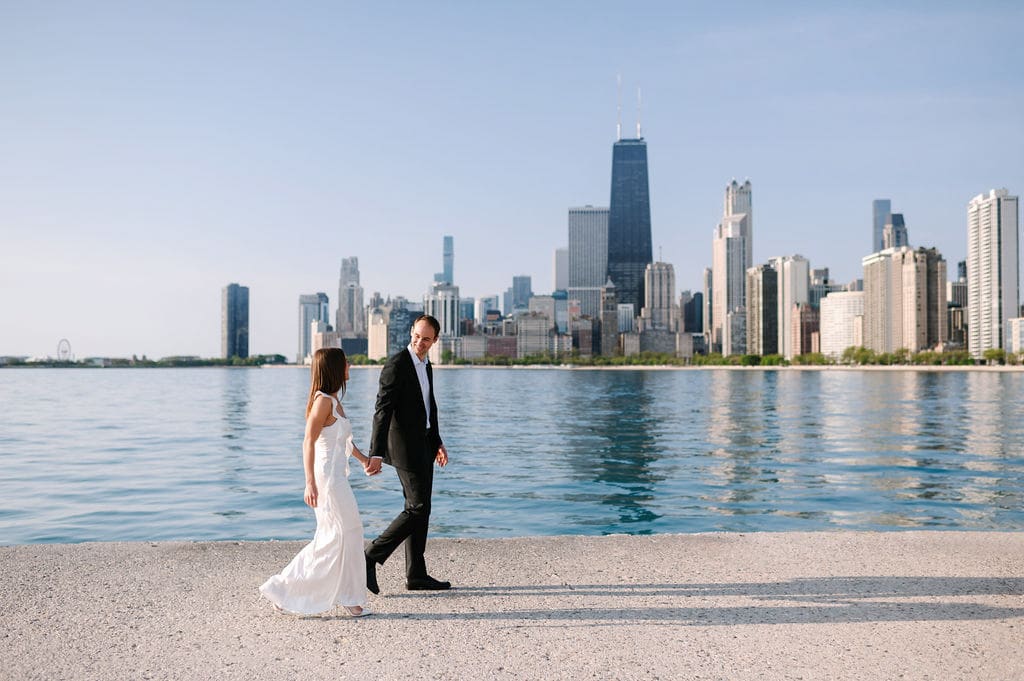 We spent Becca and Garrison’s Chicago engagement session exploring the city’s most iconic spots on a bright spring morning. From the shores of North Avenue Beach to the vibrant paths of Lincoln Park, and finally to the architectural beauty of the Wrigley Building, every moment captured their joy against the stunning city backdrop. A few months after this session, we celebrated their classic City Flats Ballroom wedding in Grand Rapids, Michigan. Two weeks after their wedding, we met up on the island of Santorini, Greece for a honeymoon session to complete the celebrations.