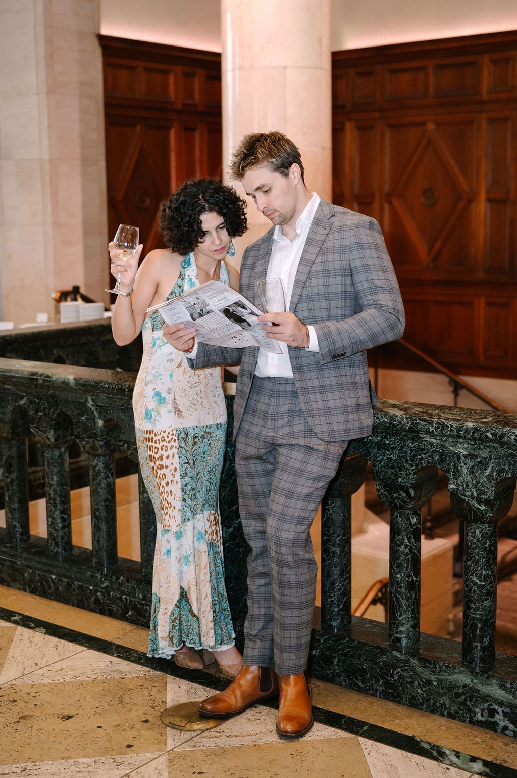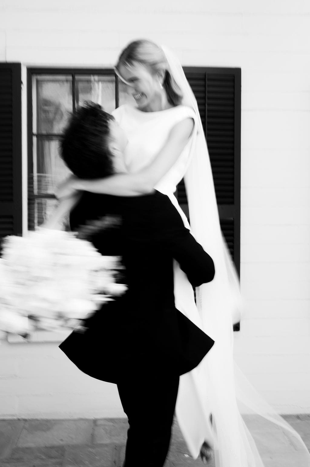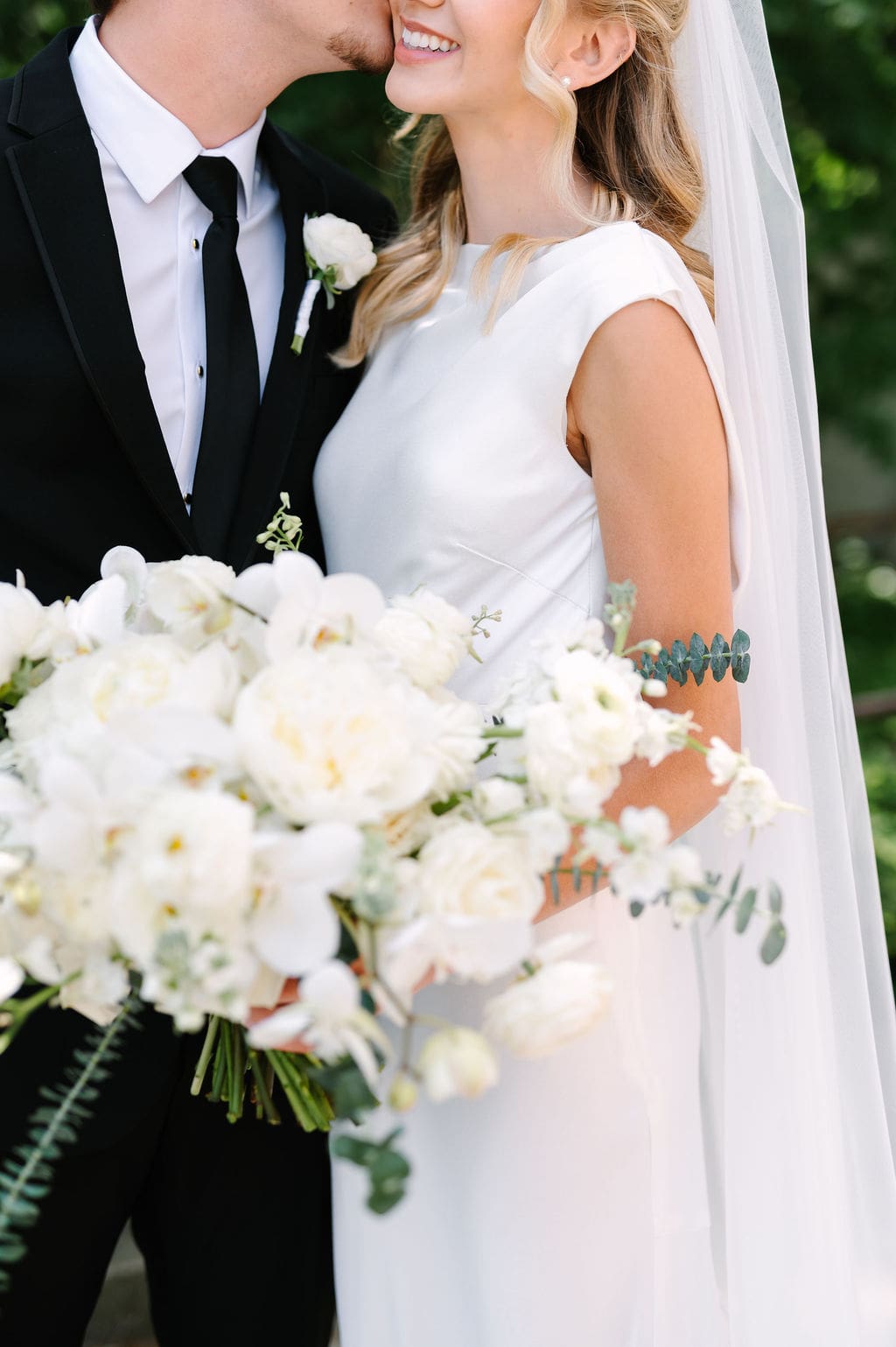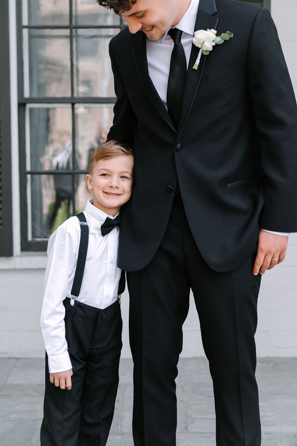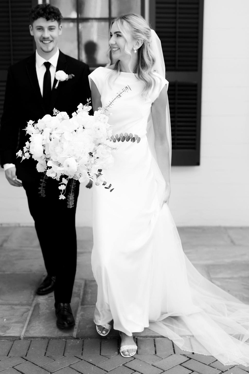 When an unexpected event filled the city center with crowds, we pivoted from our original portrait location and found a stunning alternative just down the street from the church. This stately law firm with white columns and black windows fit perfectly with the couple’s vision and color palette.