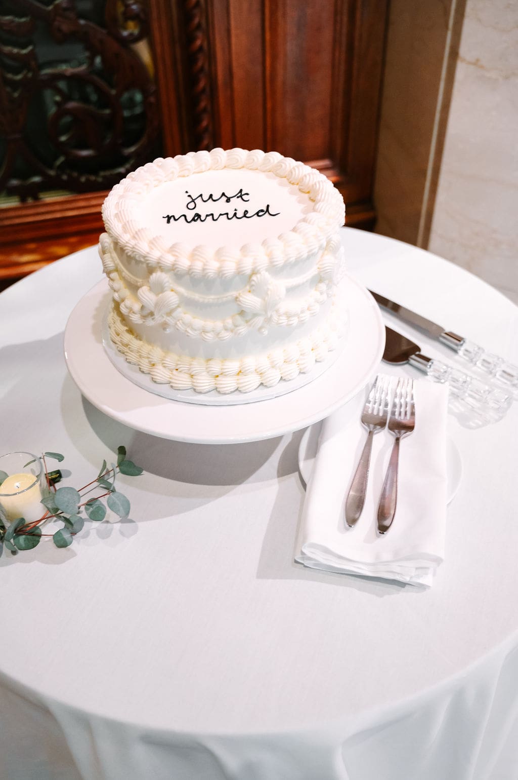 A beautifully crafted Victorian-style “Just Married” cutting cake by Nantucket Baking Co. added a charming touch.