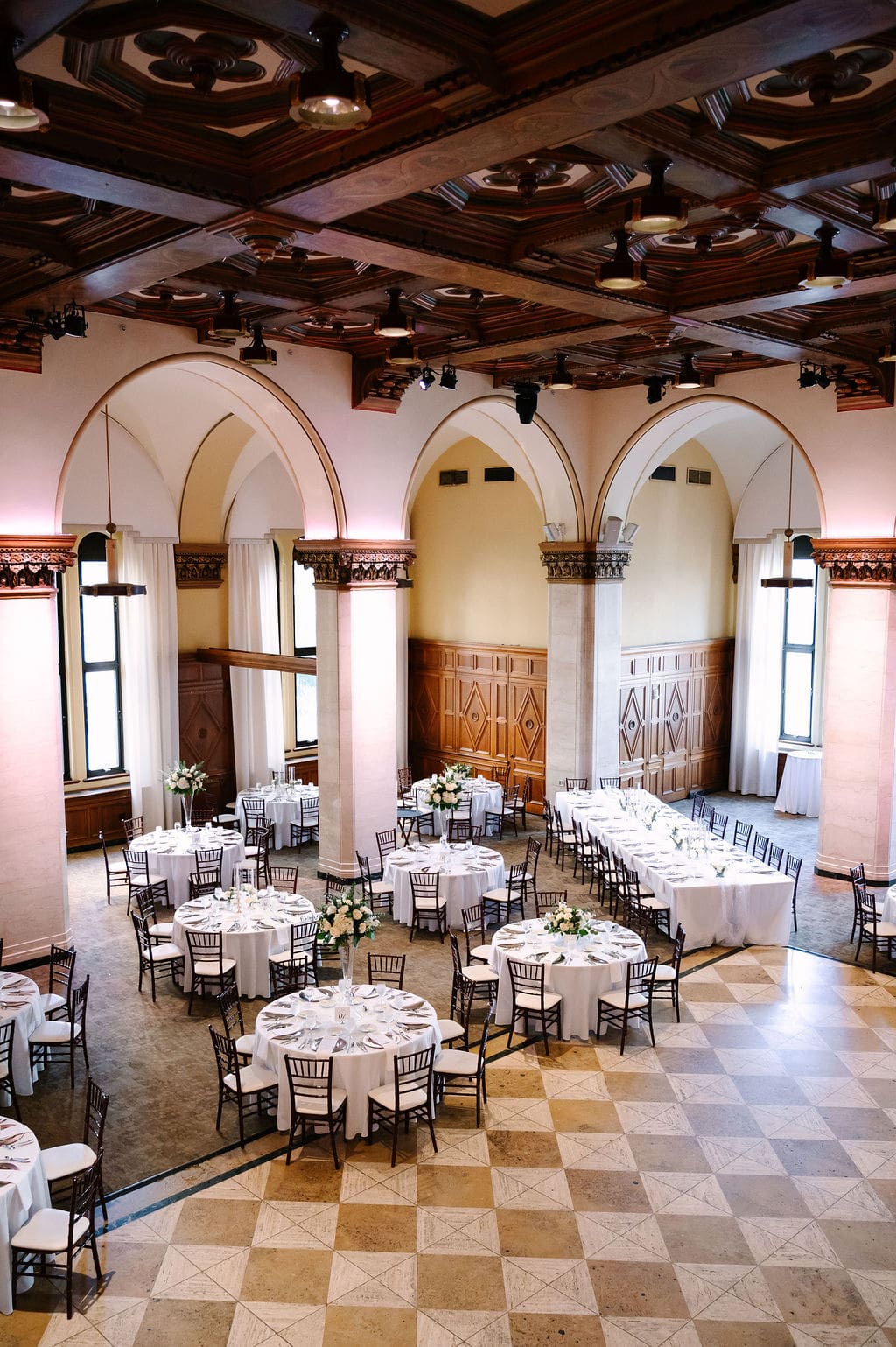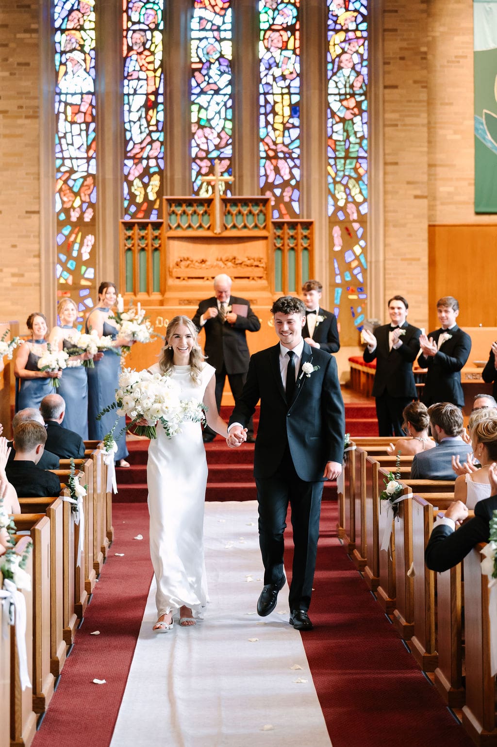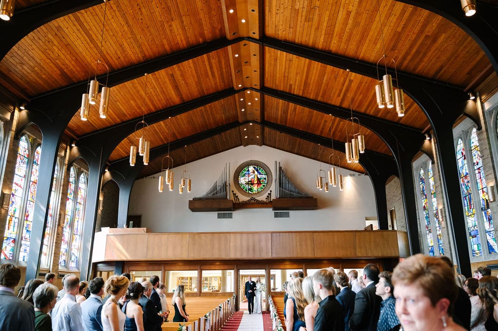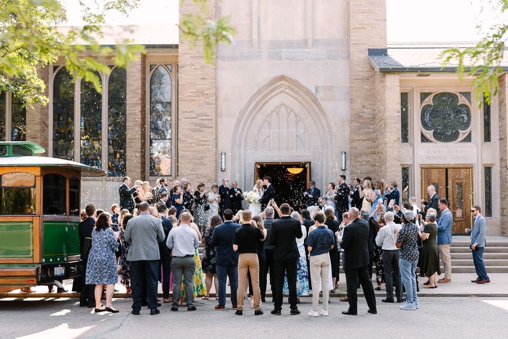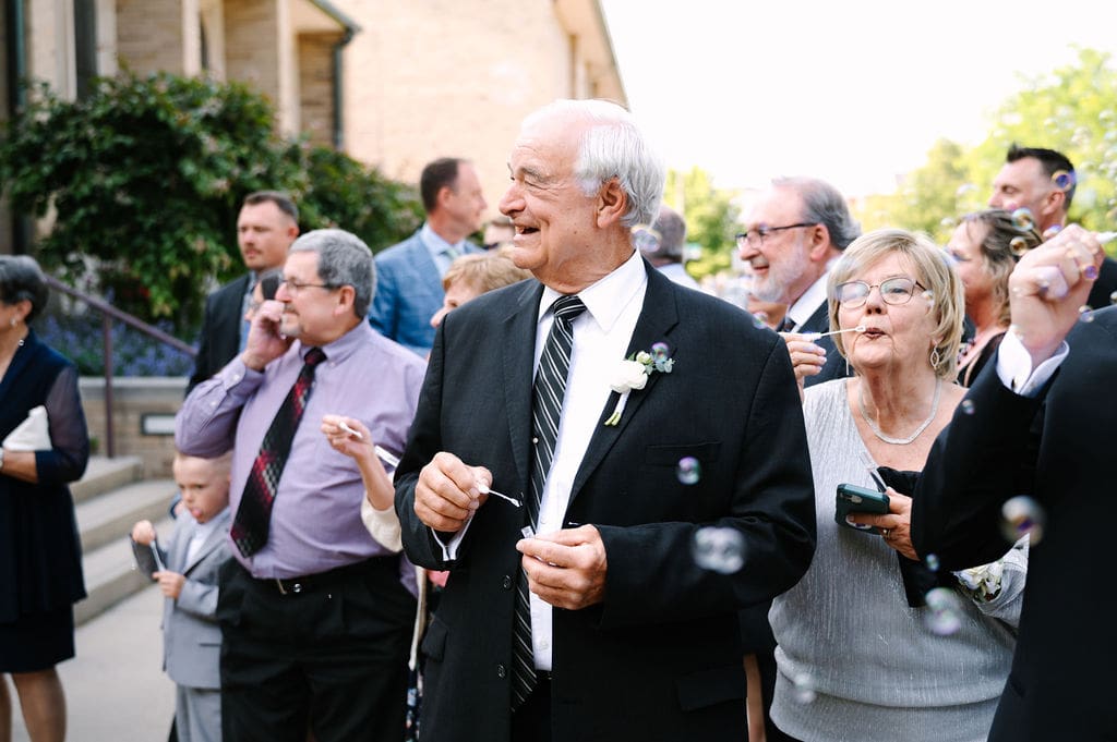 The ceremony required little décor, as the church’s breathtaking stained glass windows and historic architecture spoke for themselves. Following a faith-filled ceremony and a joyful bubble exit, guests made their way to the reception.