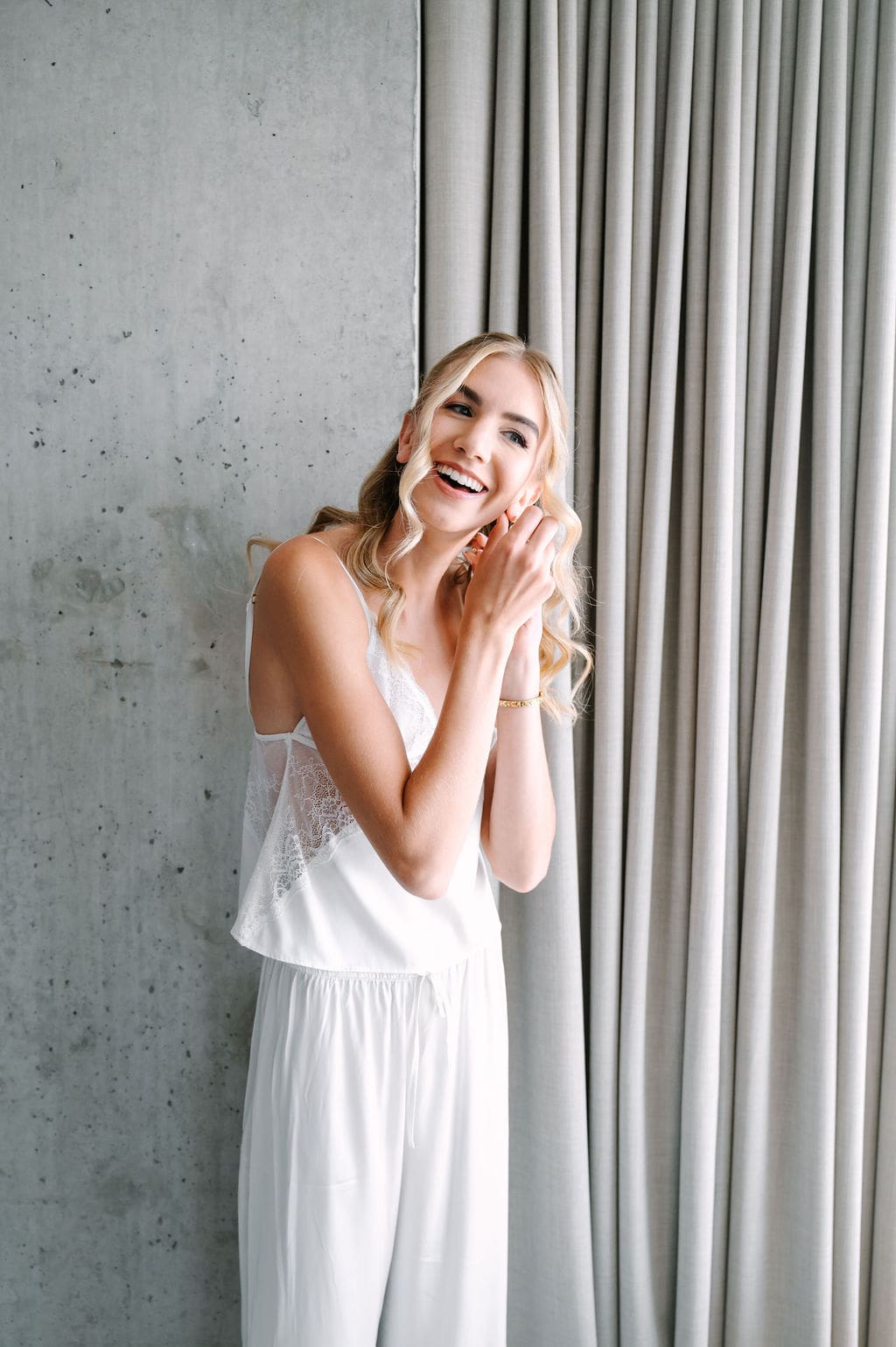 The morning began at The Canopy by Hilton, where Knockout Agency and KJ & Hairspray served as the beauty team. Kristyn got ready in a chic two-piece satin and lace set, a modern and relaxed start to the day.