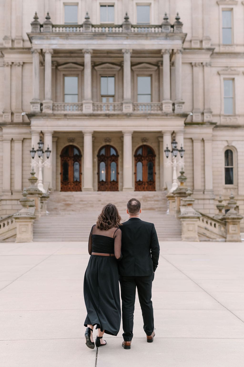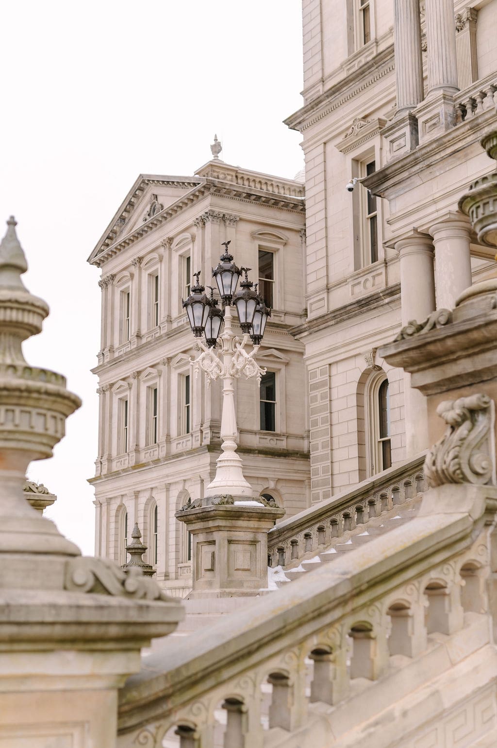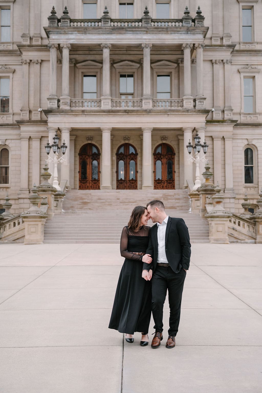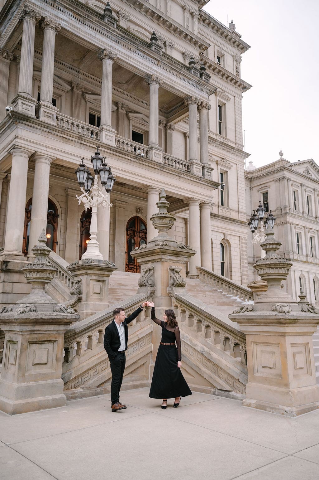 Twelve years of marriage is a milestone worth celebrating in a meaningful and memorable way. An anniversary session at the Michigan State Capitol in Lansing, Michigan provided the perfect setting. With its stately architecture, historic charm, and timeless elegance, the Capitol offers a stunning backdrop for couples looking for a refined and iconic Michigan photography location.