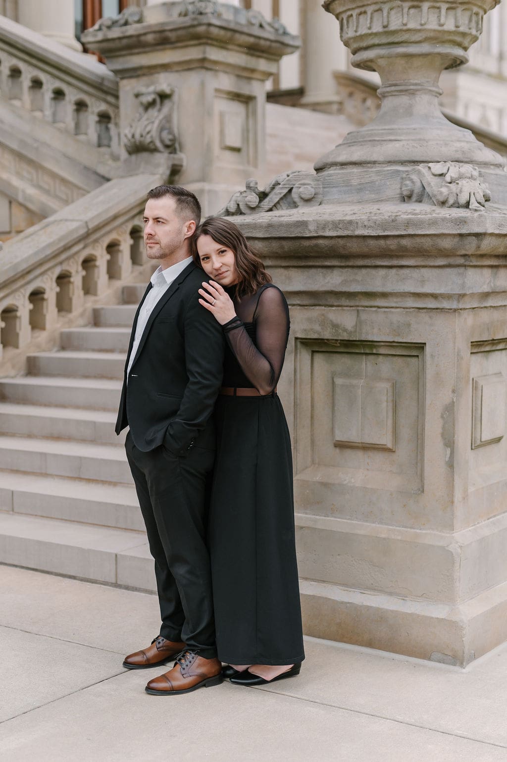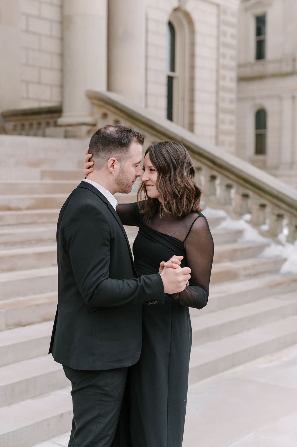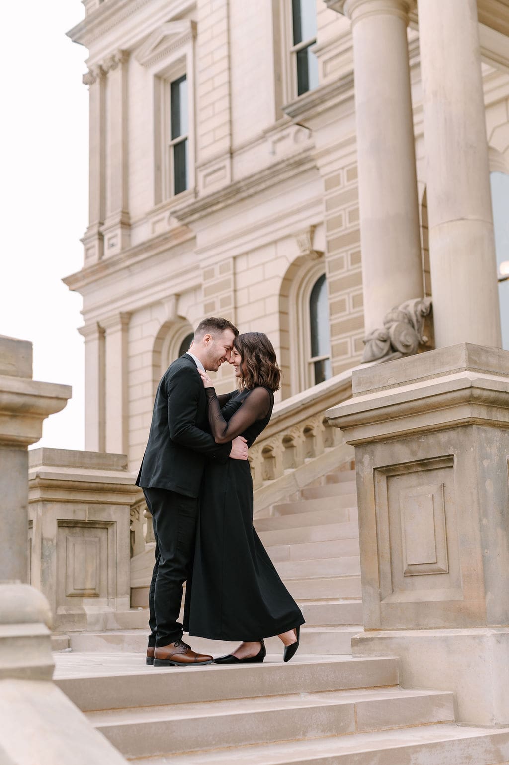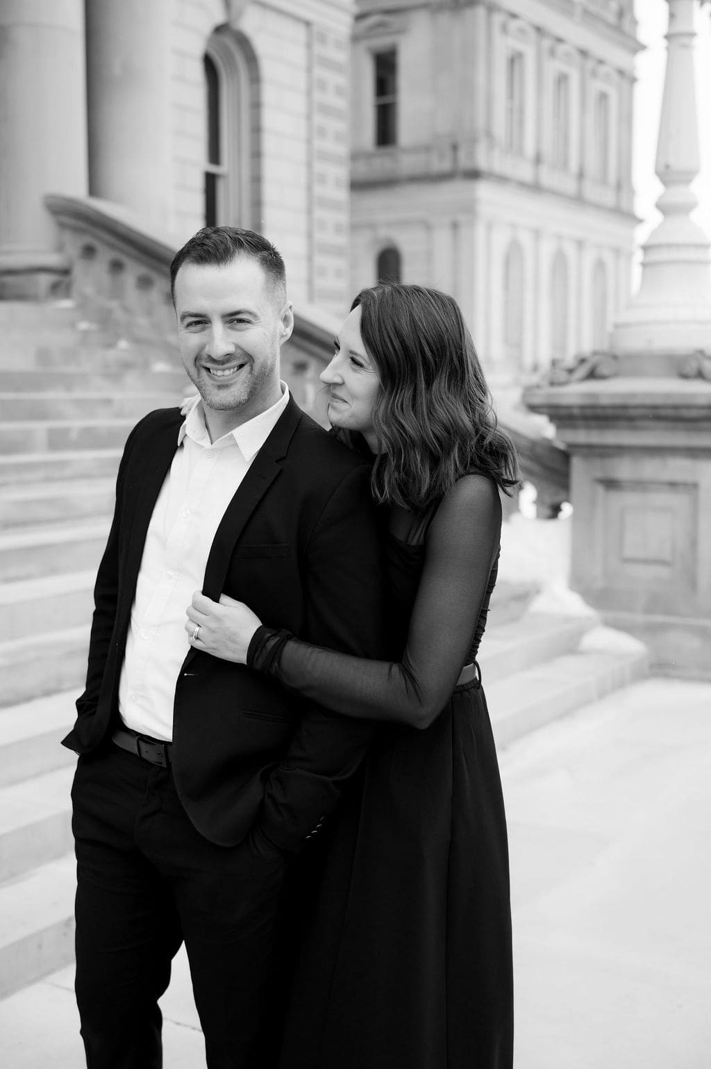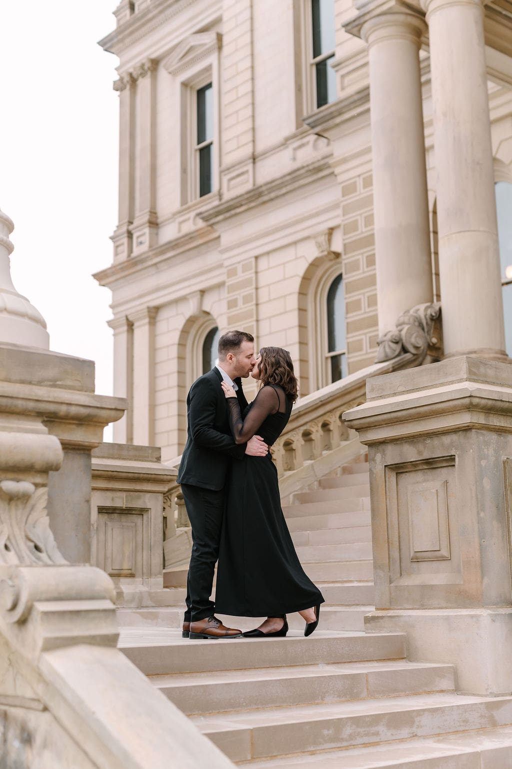 Twelve years of marriage is a milestone worth celebrating in a meaningful and memorable way. An anniversary session at the Michigan State Capitol in Lansing, Michigan provided the perfect setting. With its stately architecture, historic charm, and timeless elegance, the Capitol offers a stunning backdrop for couples looking for a refined and iconic Michigan photography location.