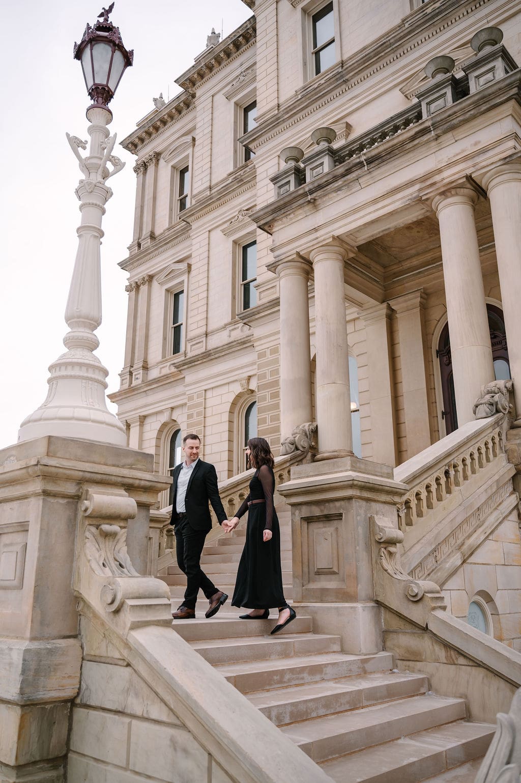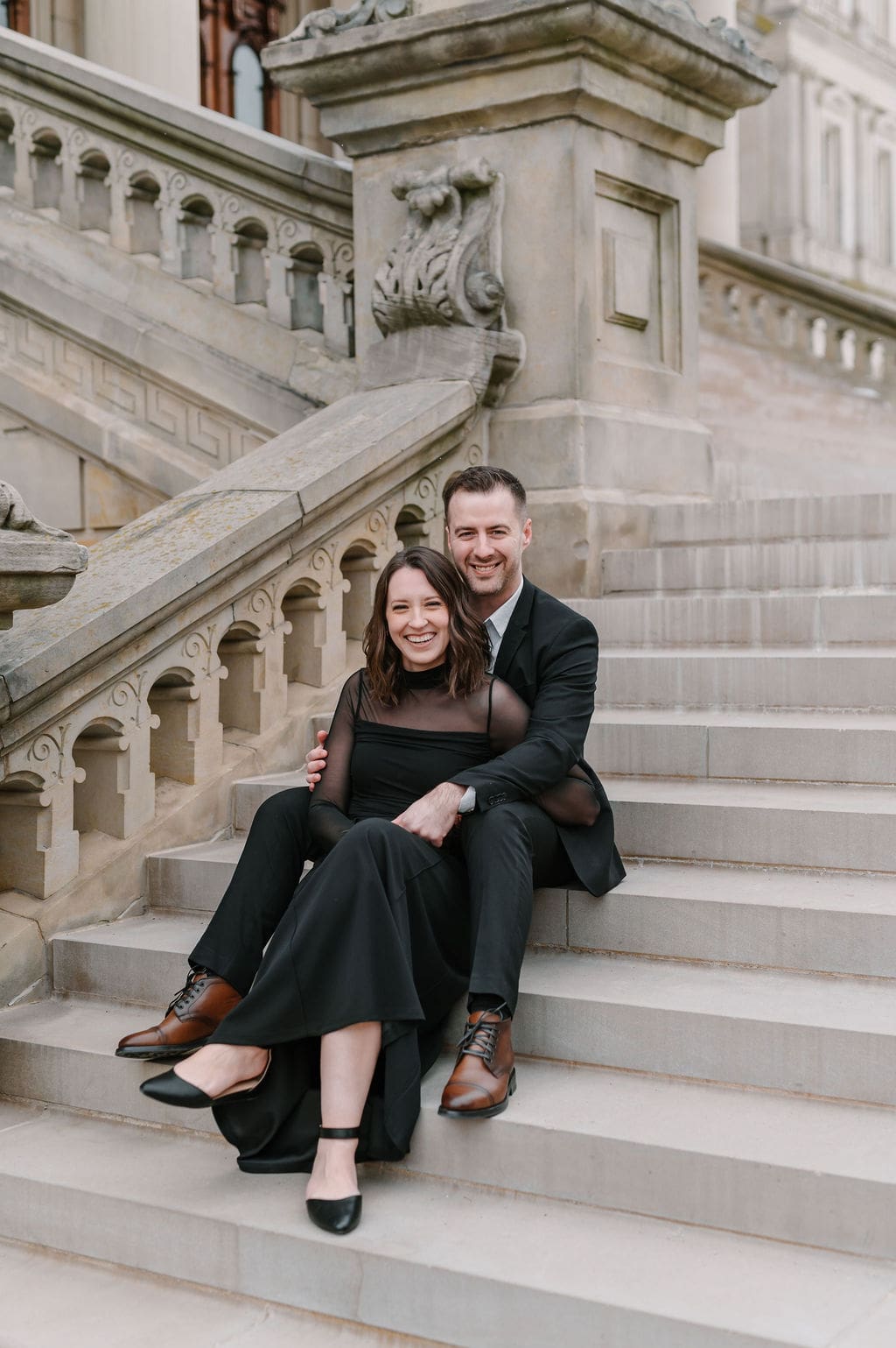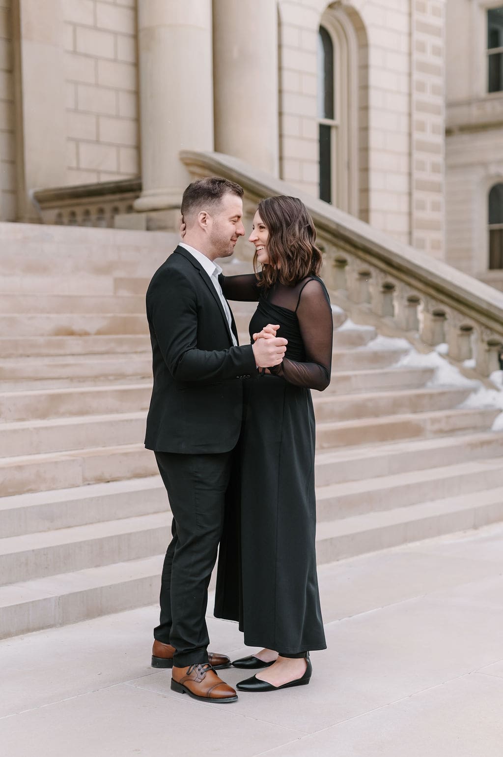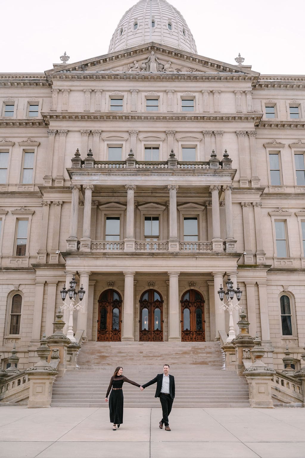 Twelve years of marriage is a milestone worth celebrating in a meaningful and memorable way. An anniversary session at the Michigan State Capitol in Lansing, Michigan provided the perfect setting. With its stately architecture, historic charm, and timeless elegance, the Capitol offers a stunning backdrop for couples looking for a refined and iconic Michigan photography location.