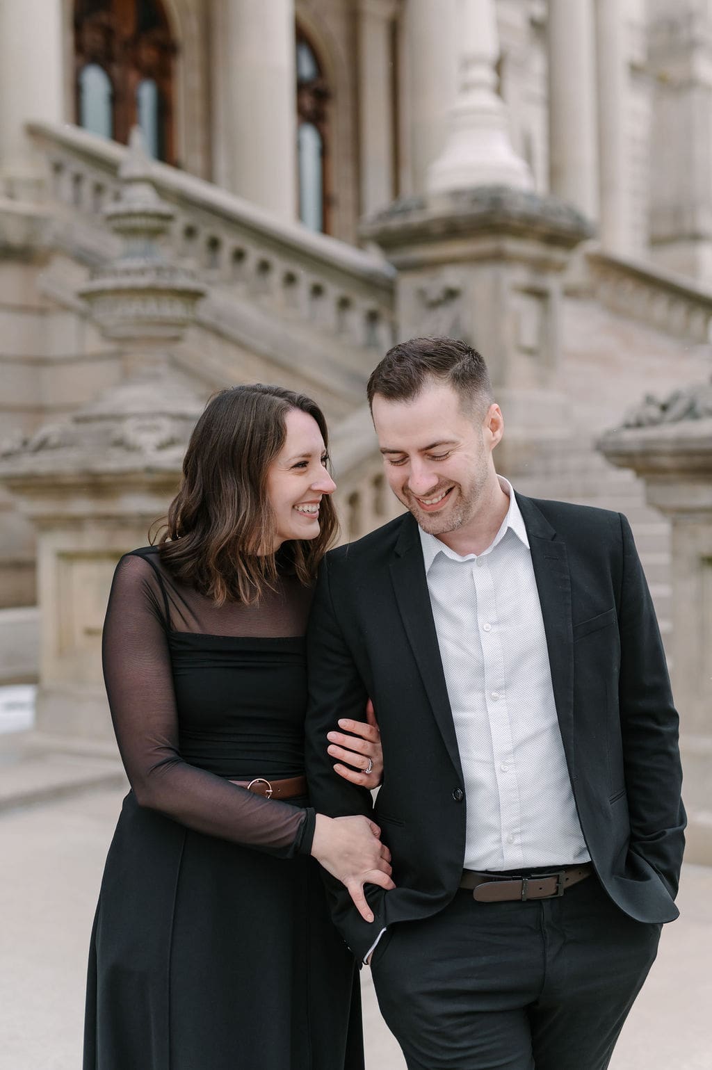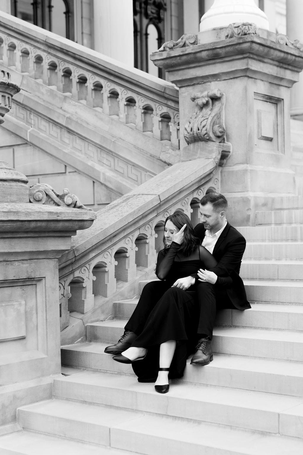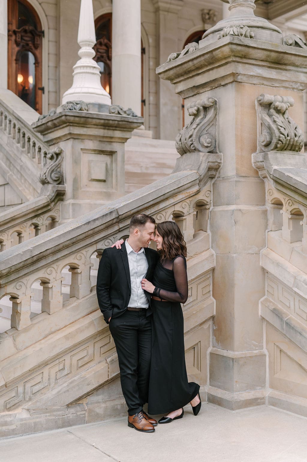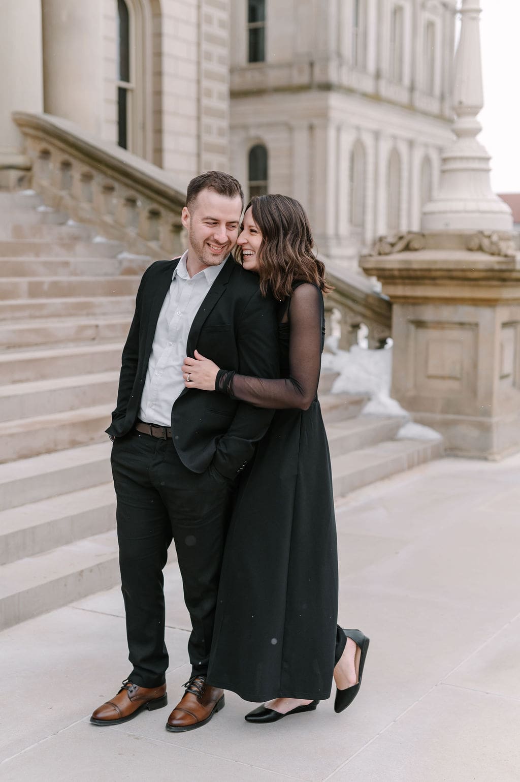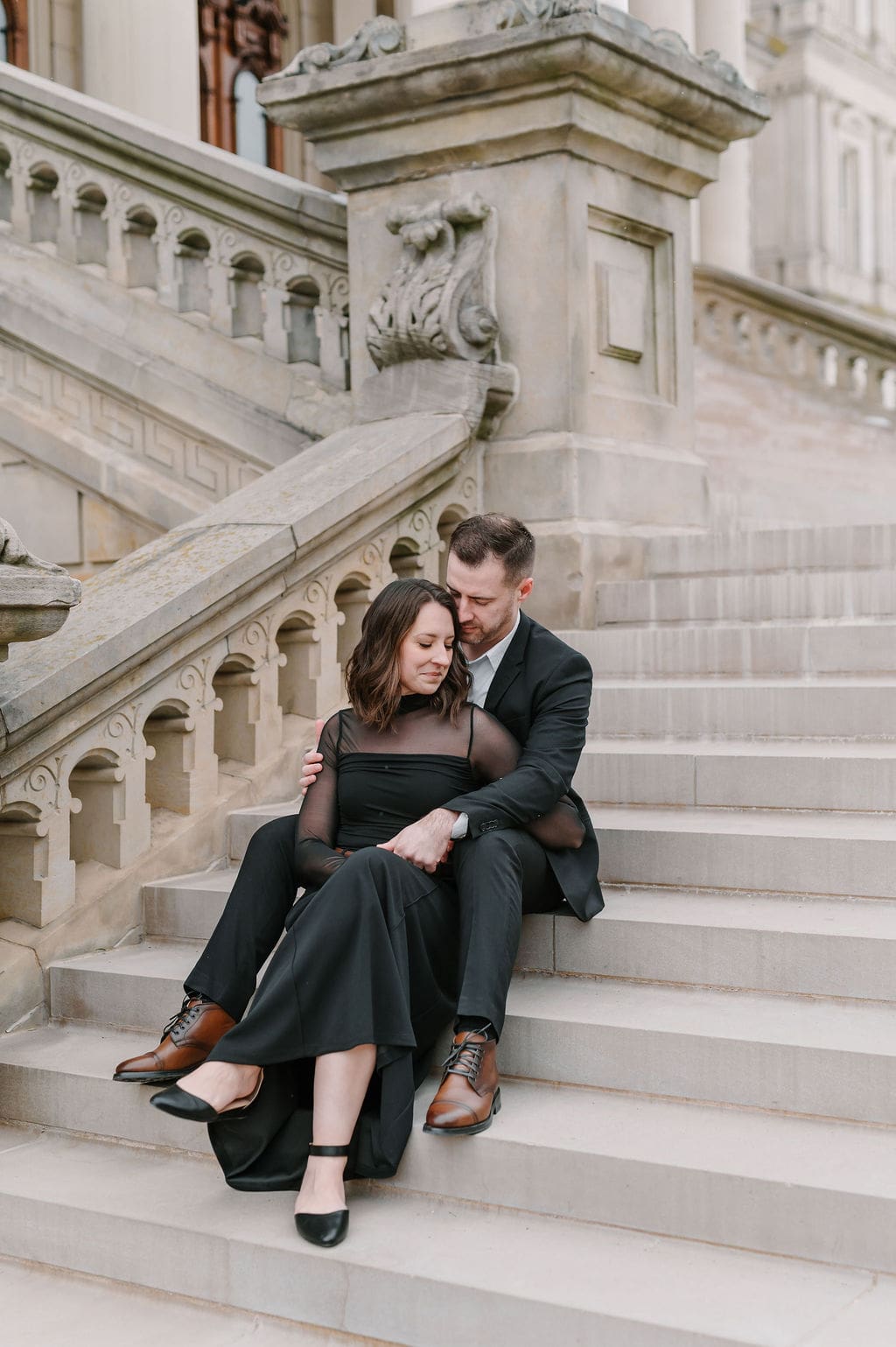 Twelve years of marriage is a milestone worth celebrating in a meaningful and memorable way. An anniversary session at the Michigan State Capitol in Lansing, Michigan provided the perfect setting. With its stately architecture, historic charm, and timeless elegance, the Capitol offers a stunning backdrop for couples looking for a refined and iconic Michigan photography location.