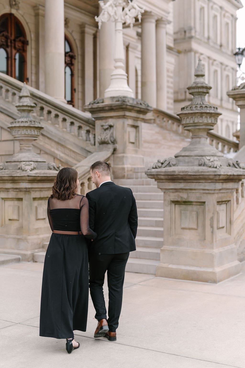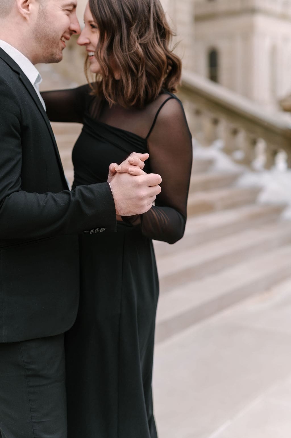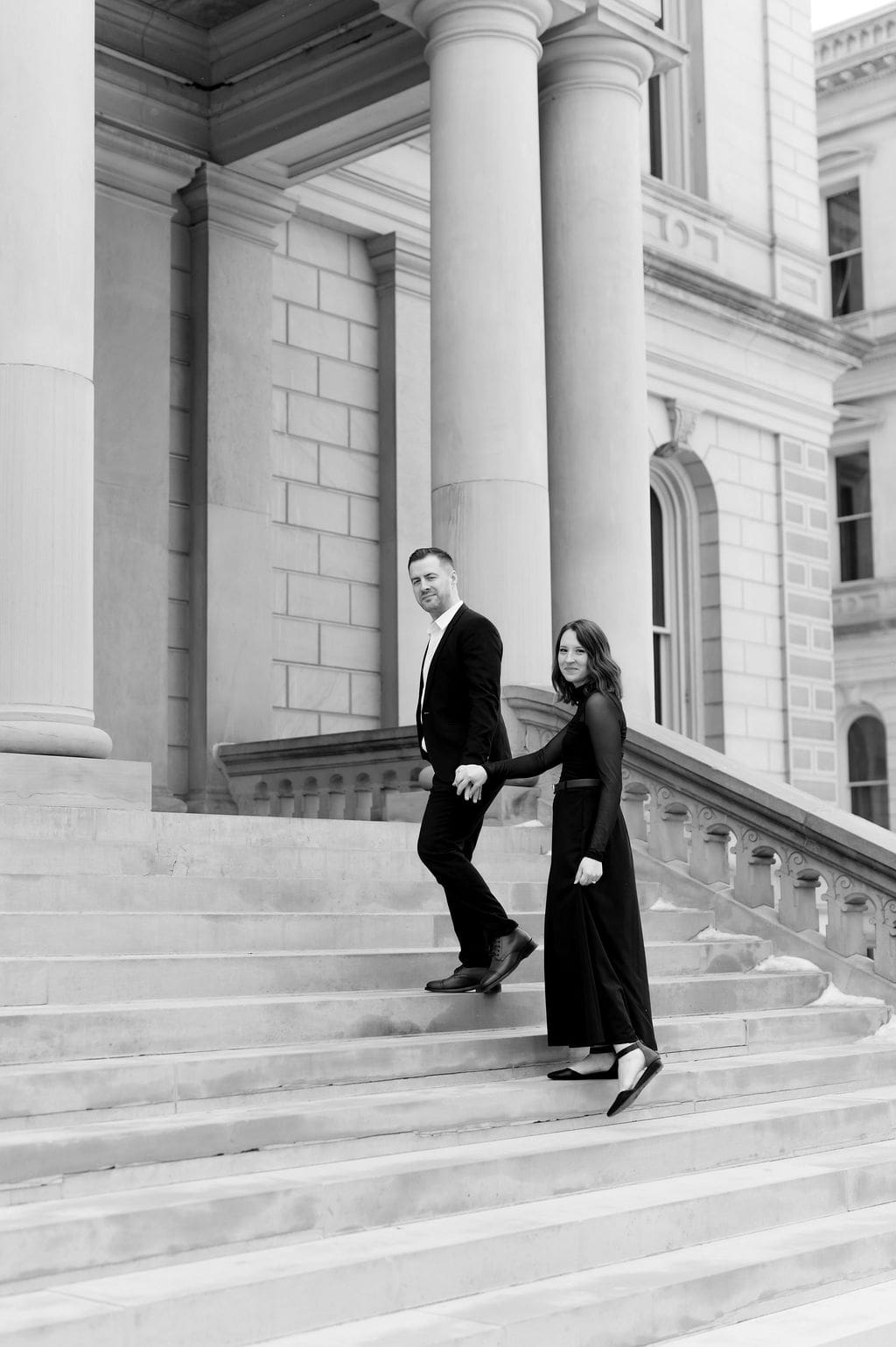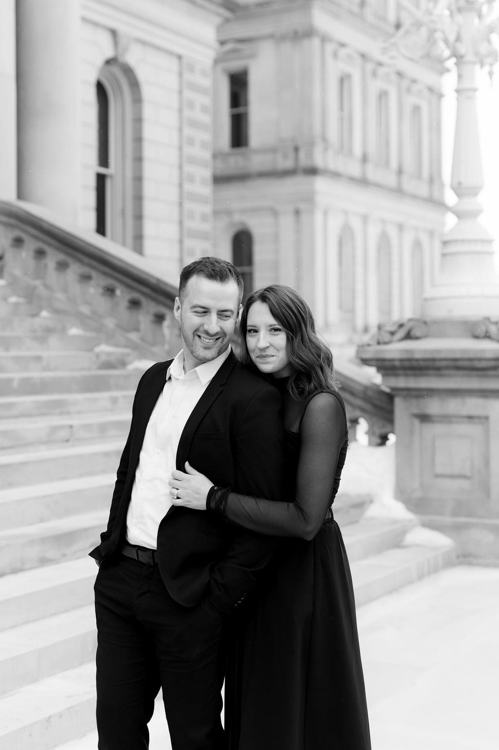 Twelve years of marriage is a milestone worth celebrating in a meaningful and memorable way. An anniversary session at the Michigan State Capitol in Lansing, Michigan provided the perfect setting. With its stately architecture, historic charm, and timeless elegance, the Capitol offers a stunning backdrop for couples looking for a refined and iconic Michigan photography location.