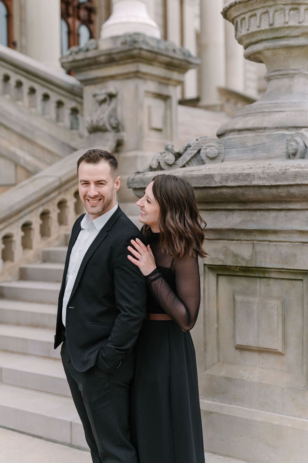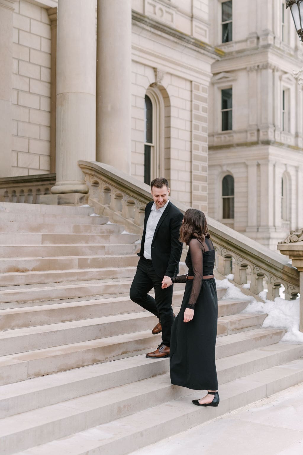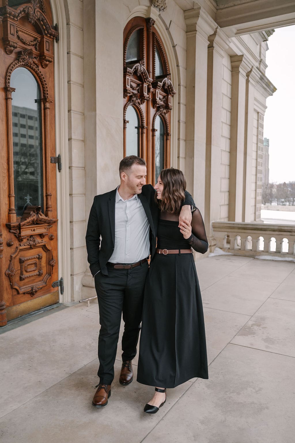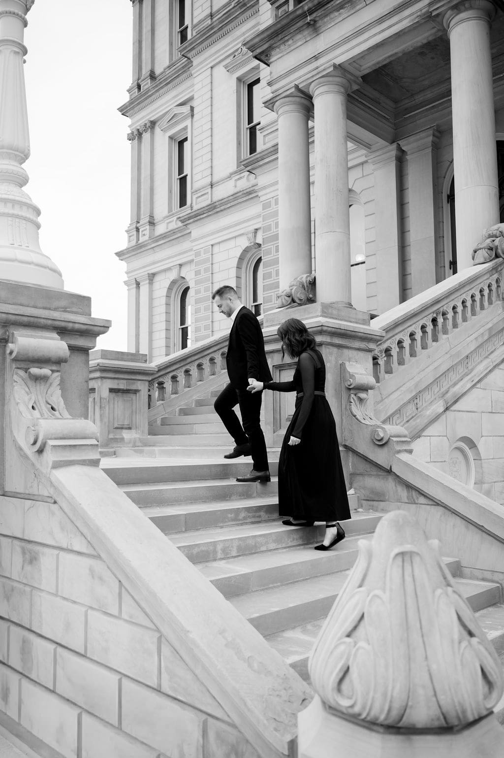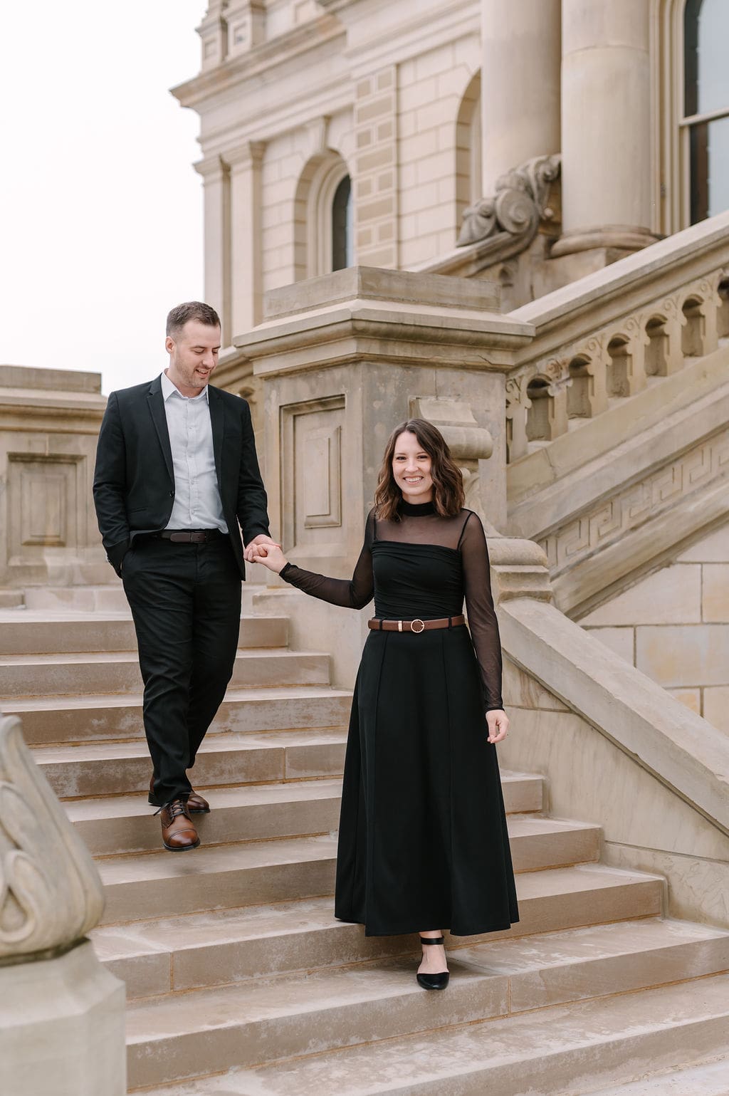 Twelve years of marriage is a milestone worth celebrating in a meaningful and memorable way. An anniversary session at the Michigan State Capitol in Lansing, Michigan provided the perfect setting. With its stately architecture, historic charm, and timeless elegance, the Capitol offers a stunning backdrop for couples looking for a refined and iconic Michigan photography location.