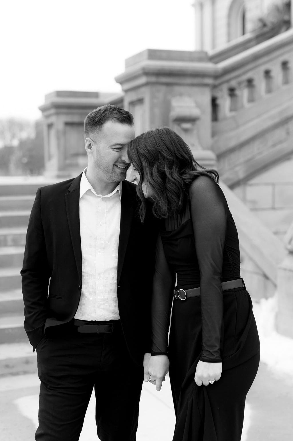 Josh and Andrea, the talented duo behind Josh + Andrea Photography, spend their days documenting love stories for others, so it was especially meaningful to turn the camera toward them as they celebrated their own. As a soft snowfall drifted down around us, the Capitol’s grand exterior created a romantic winter atmosphere that felt cinematic and intimate all at once.