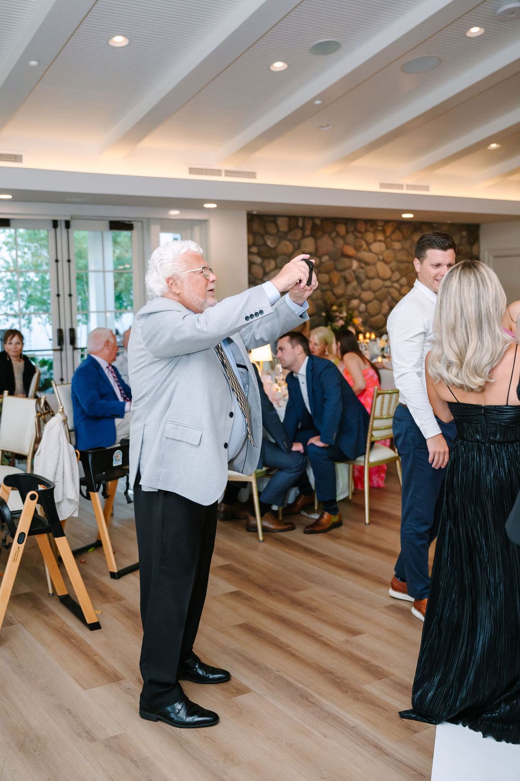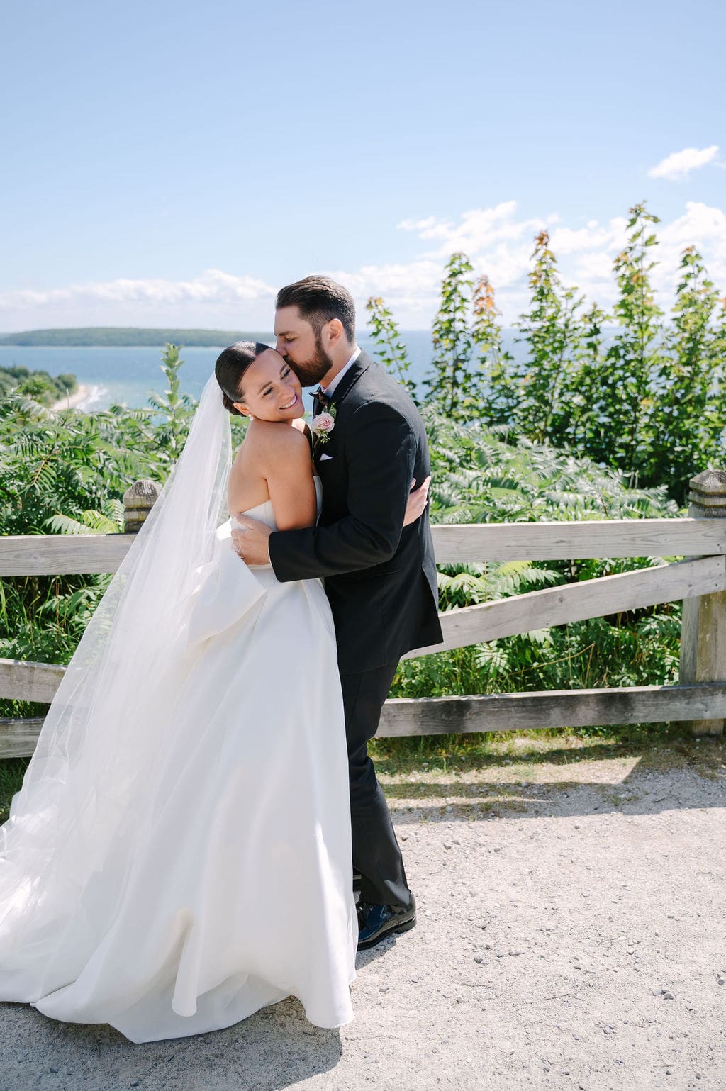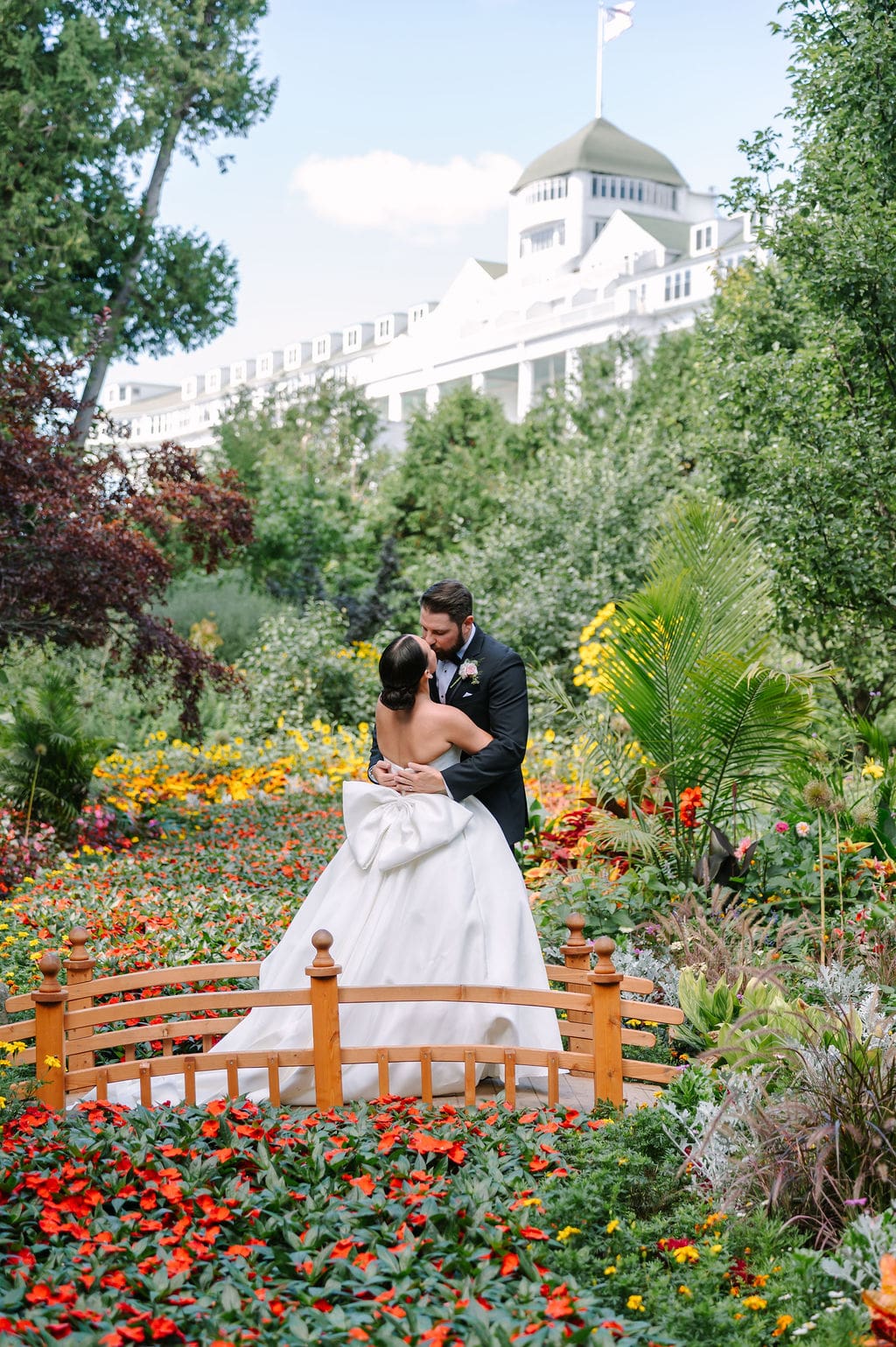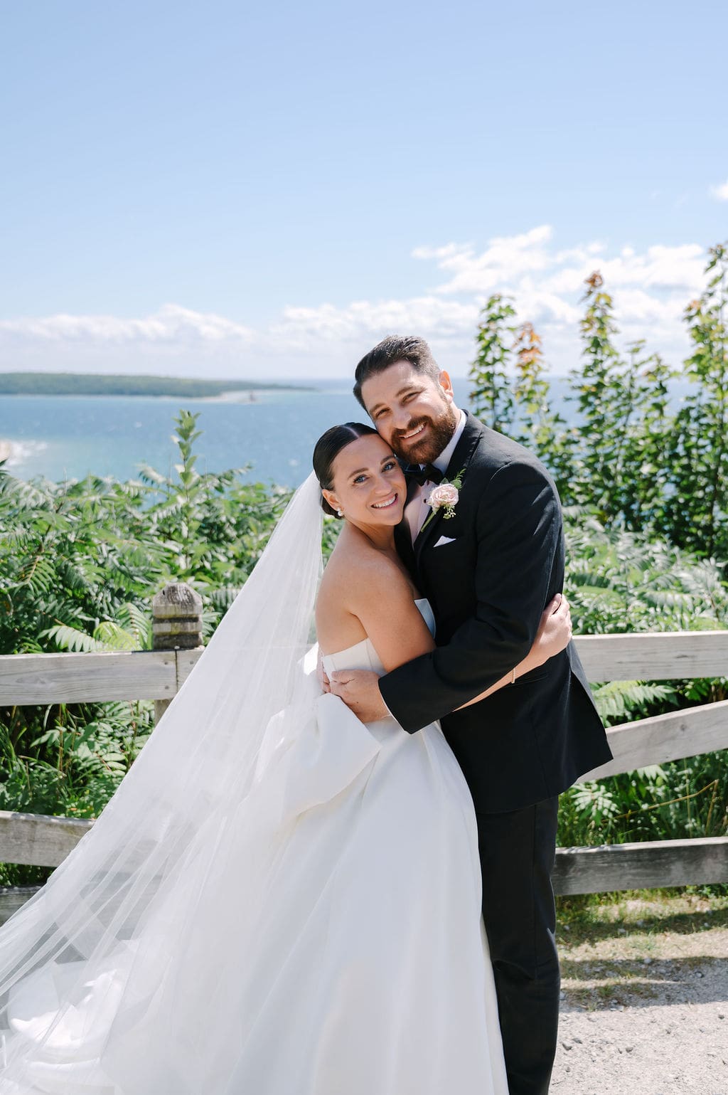 The celebration began with guests taking the ferry from the mainland to Mackinac Island, where they attended a welcome party at the Iroquois Hotel. Surrounded by Victorian architecture and lake breezes, anticipation built as the wedding day approached.