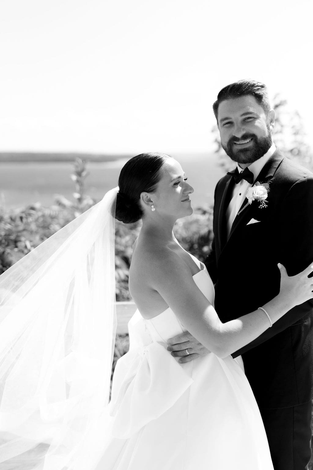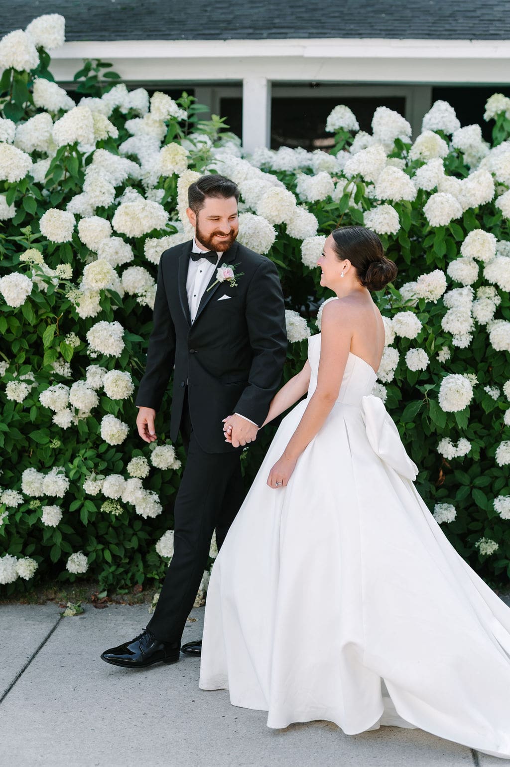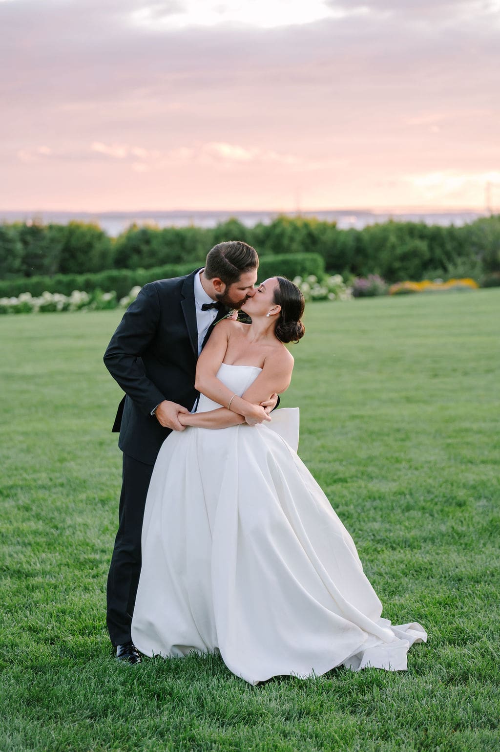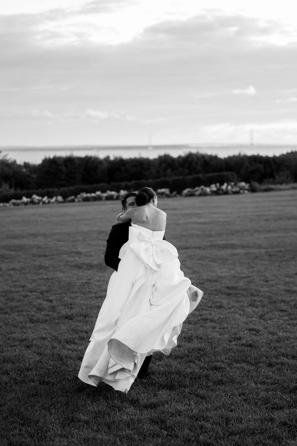 Following a private first look in the orchard at The Inn at Stonecliffe, Quincey and Chandler embarked on a two-hour Vis-à-Vis carriage ride around Mackinac Island. Their portraits spanned some of the island’s most iconic locations, including a lighthouse overlook, The Grand Hotel’s secret gardens, a downtown storefront overflowing with hydrangeas, and the docks of the Mackinac Island Yacht Club.