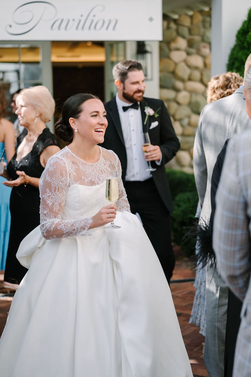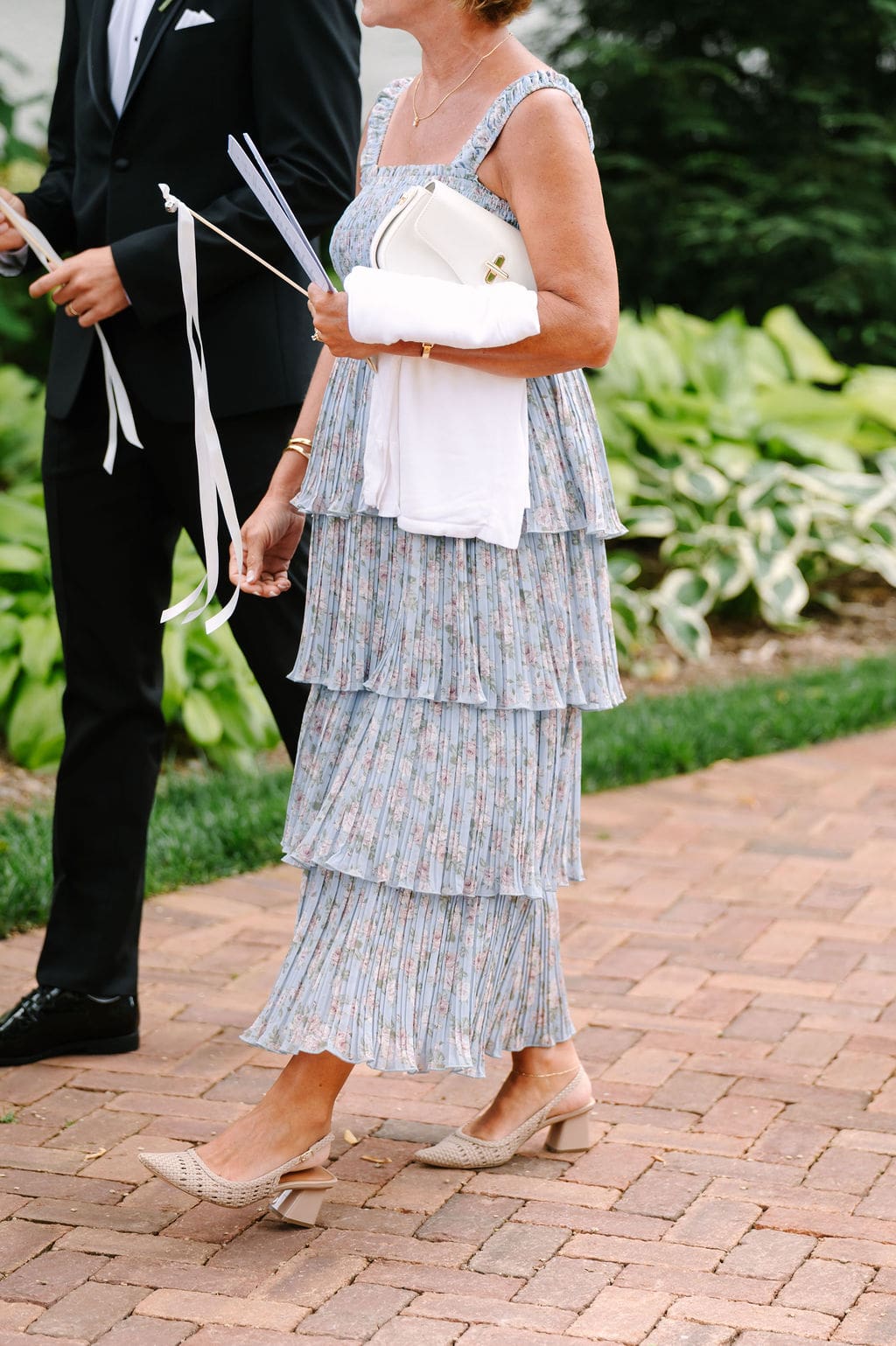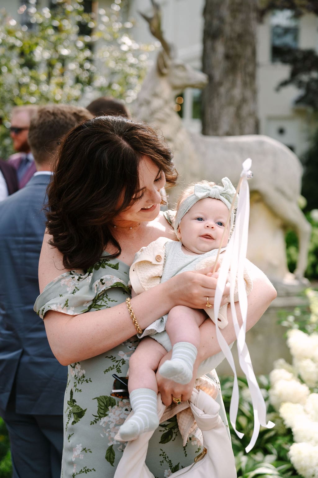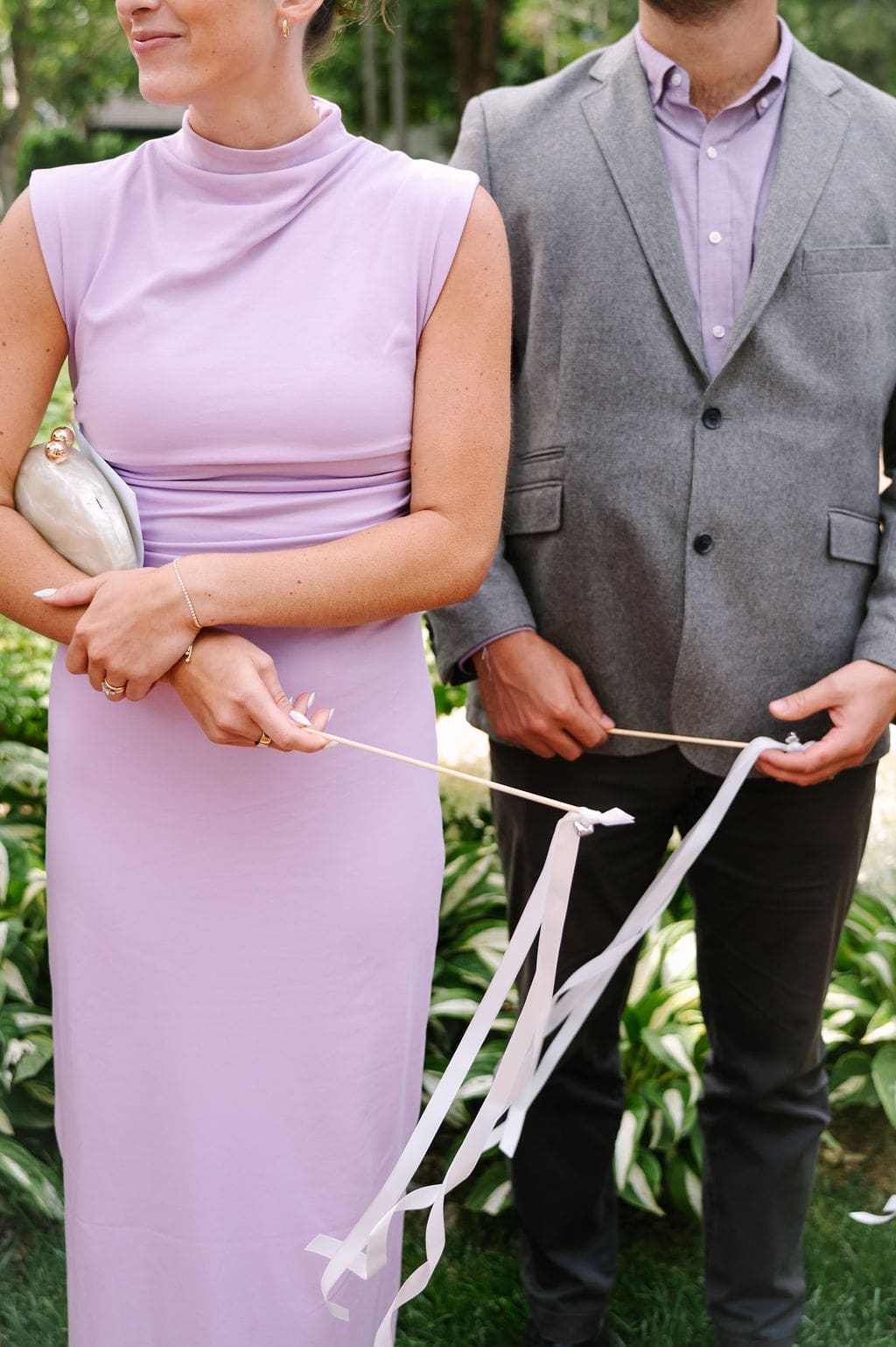 Following the ceremony, guests gathered at the front of the mansion for a joyful exit featuring bell and ribbon wands.