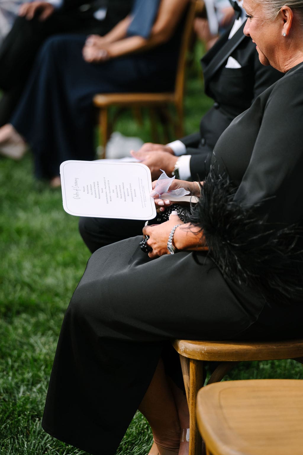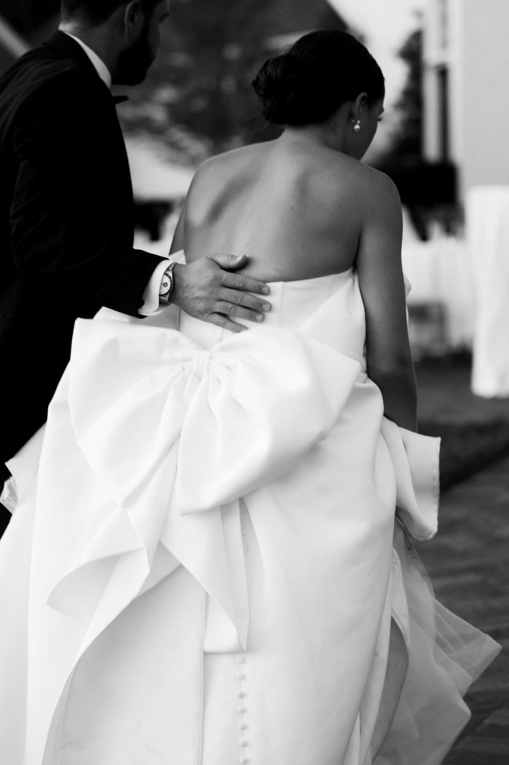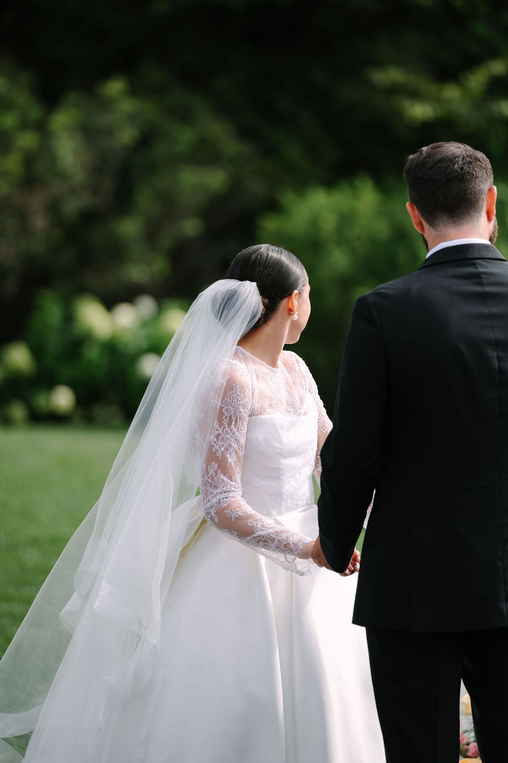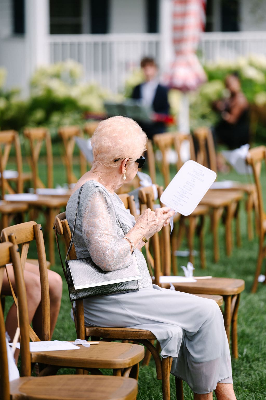 Following the ceremony, guests gathered at the front of the mansion for a joyful exit featuring bell and ribbon wands.