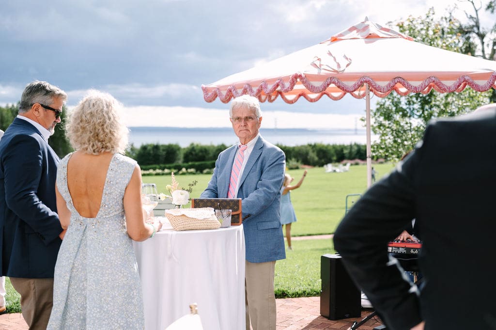The Inn at Stonecliffe catered dinner, followed by heartfelt speeches as the sun began to set. Many guests returned to the lawn to take in the view as the sky filled with vibrant color and the Straits of Mackinac stood in stunning contrast against the sunset.