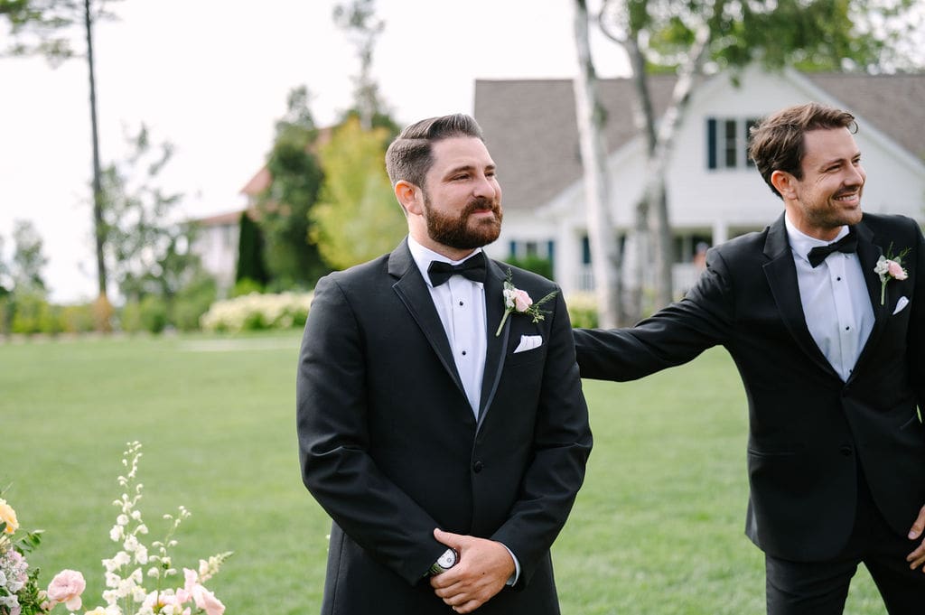 The wedding morning arrived with sunshine and a gentle breeze—perfect conditions for a summer wedding on Mackinac Island. Quincey and her sister got ready in the bridal suite at The Inn at Stonecliffe, overlooking the ceremony lawn below.