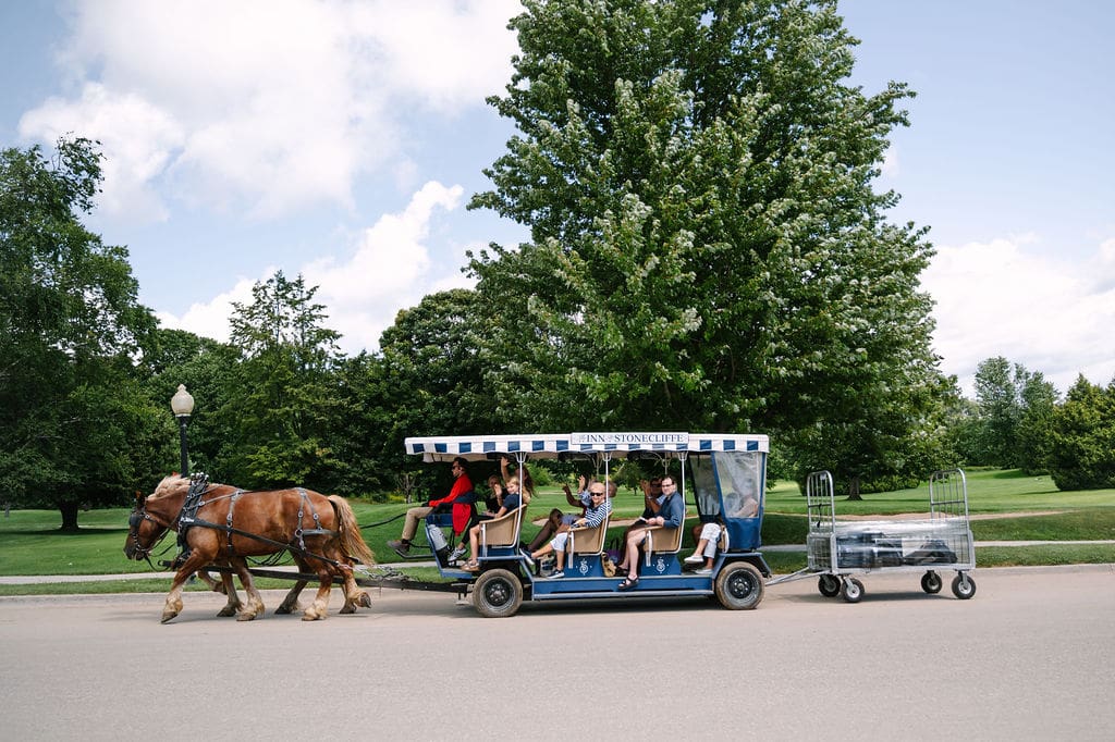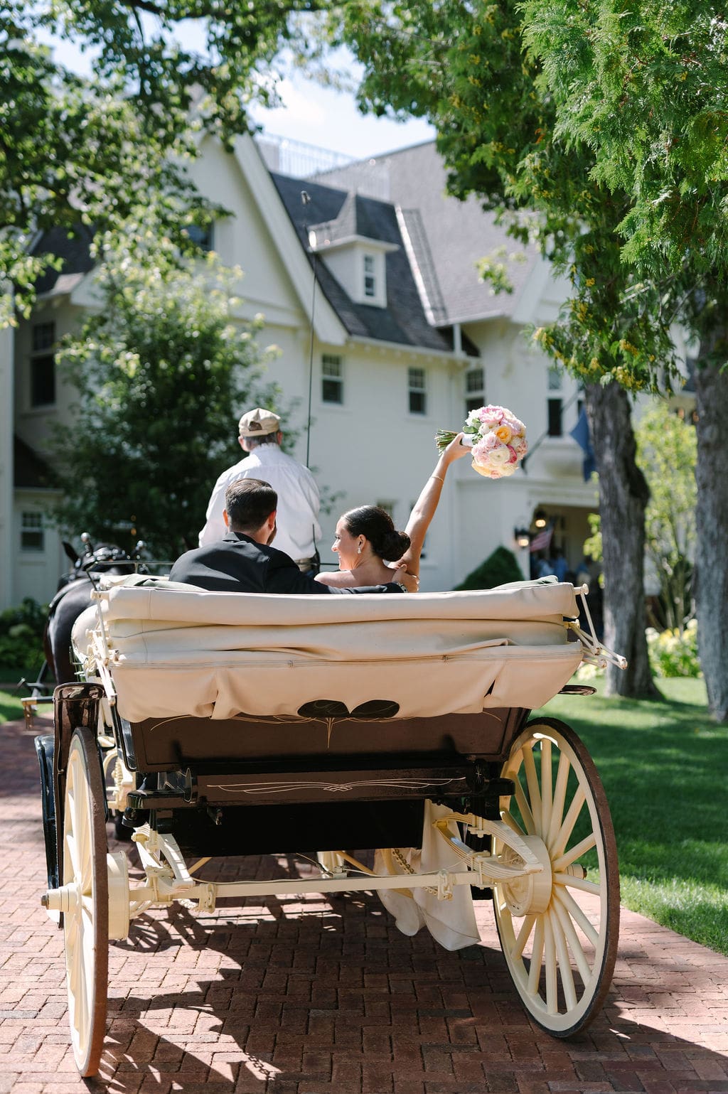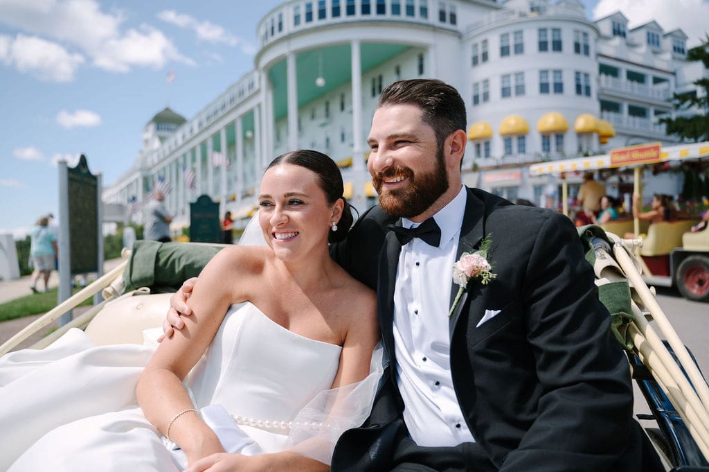 As they rode through downtown Mackinac Island, cheers from passersby turned the experience into a once-in-a-lifetime moment—celebrating the couple like island royalty.