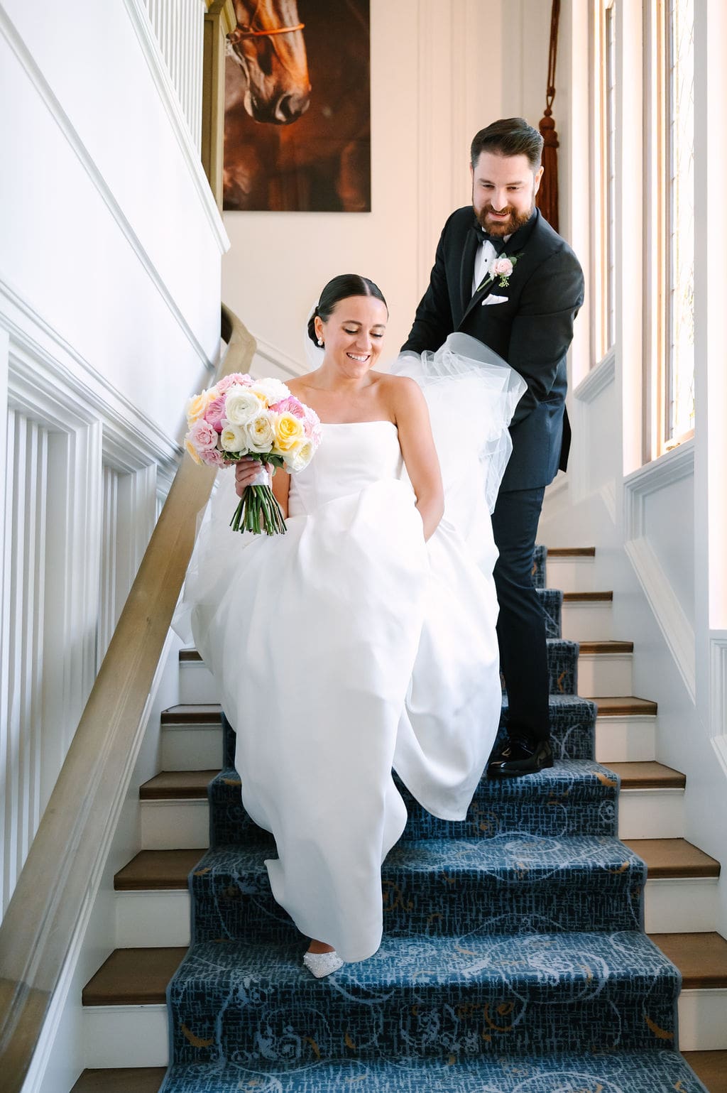Guests arrived via horse-drawn taxis and were welcomed by the elegance and charm of The Inn at Stonecliffe. With a summer formal dress code, the fashion was vibrant, colorful, and impeccably styled.