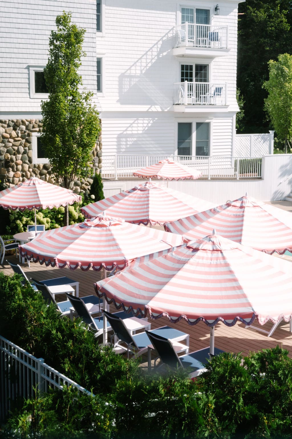 Pink stripes became a recurring design element throughout the day. This design echoed the venue’s colorful umbrellas and paired beautifully with soft butter yellow accents for a playful yet elegant palette.